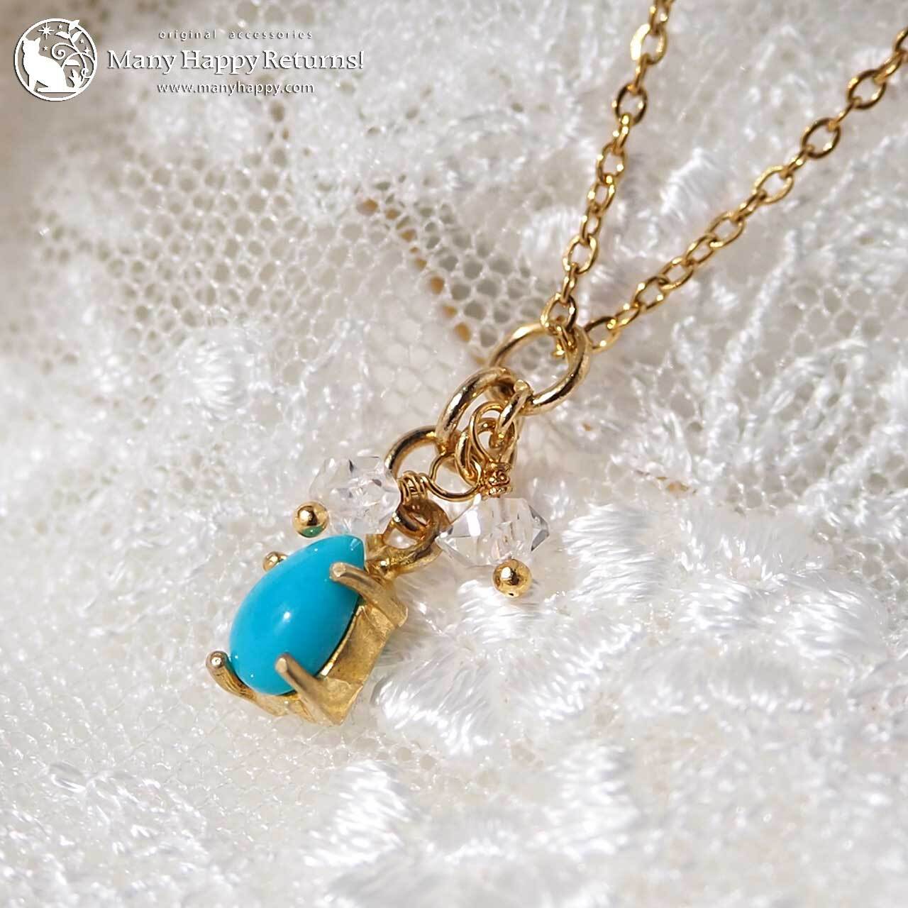 b-3781 宝石質アリゾナキングマンターコイズオーバルカボション&ハーキマーダイヤモンド☆18KGPプチネックレス