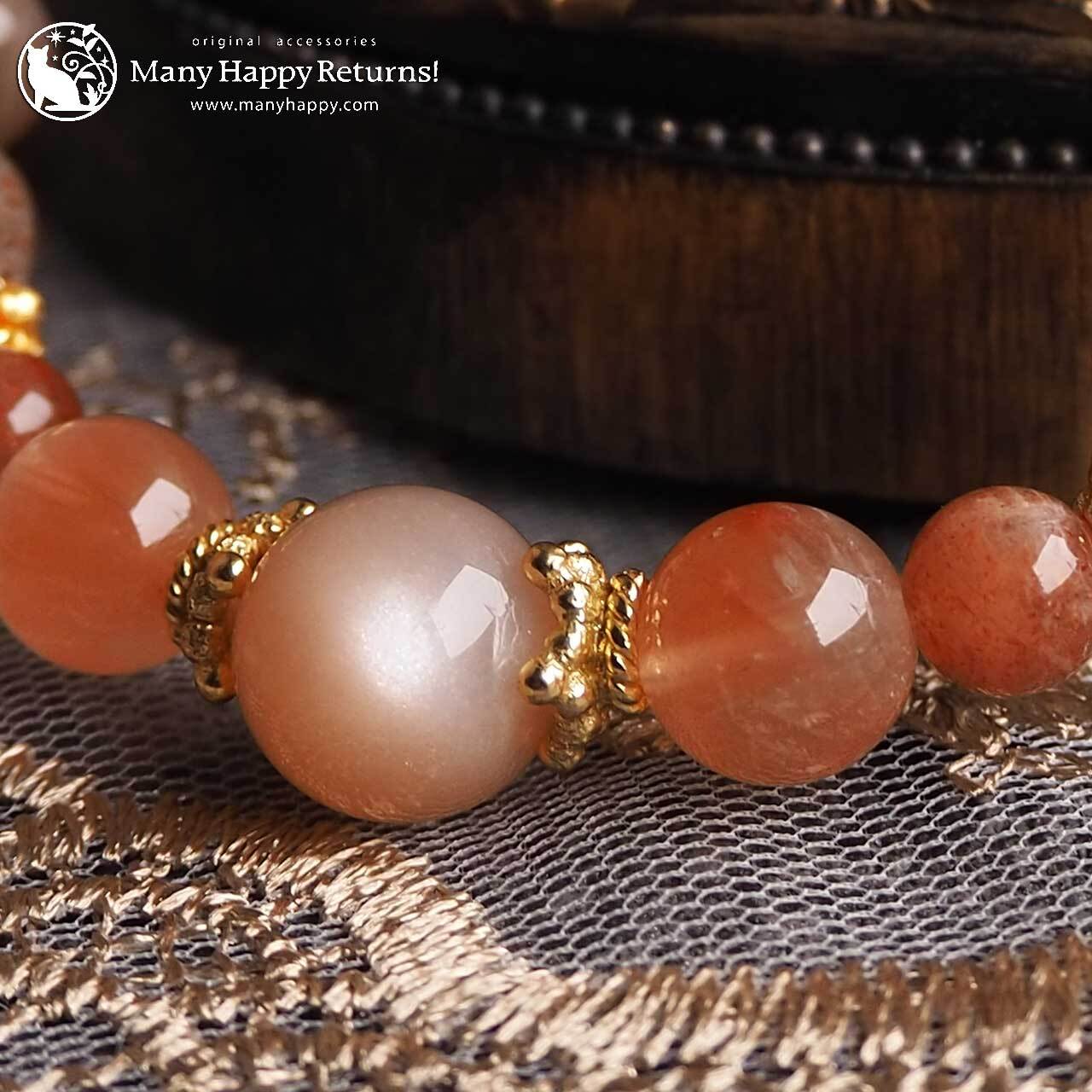 シラーの美しいオレンジムーンストーンをメインに、サンストーン、ラビットヘアルチルを連ねた第二チャクラブレスレット。
