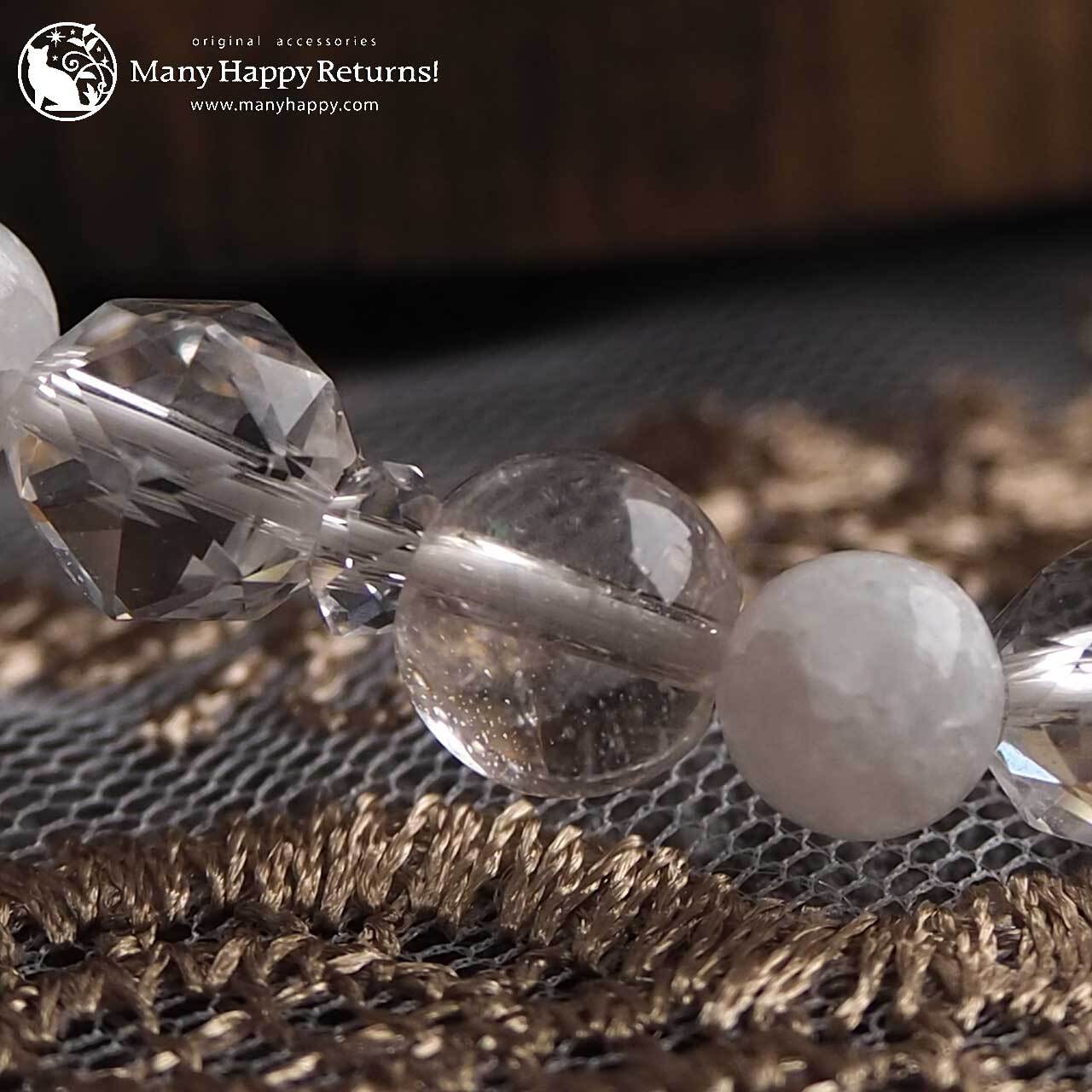 上質のステップアップクォーツをメインに、ヒマラヤムーンクォーツ、ティップリンアイリスクォーツ、ホワイトジェイド、美しいスターカット水晶を合わせたブレス。