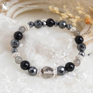 心を鎮めて内なる声を聴くための「精神の鏡」、グラファイトinクォーツをメインに、クールな色合いの石たちを連ねましたので、男性にもおすすめです。