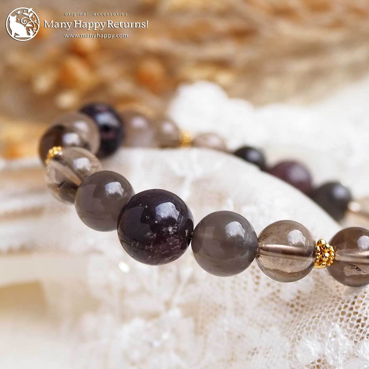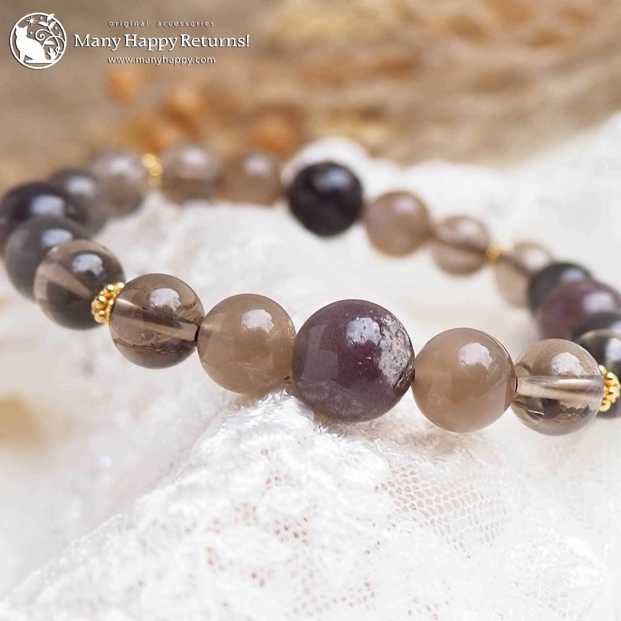 アークナイトを全体に4石使い、スモーキースパイラルクォーツ、シルバームーンストーンを合わせたスピリチュアルブレス。