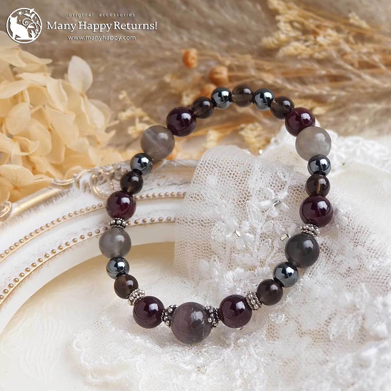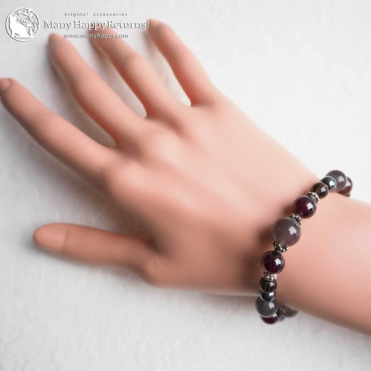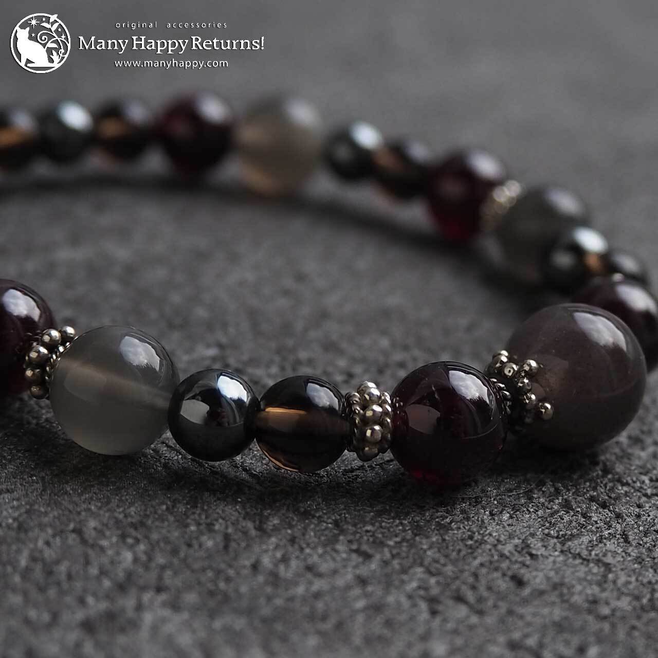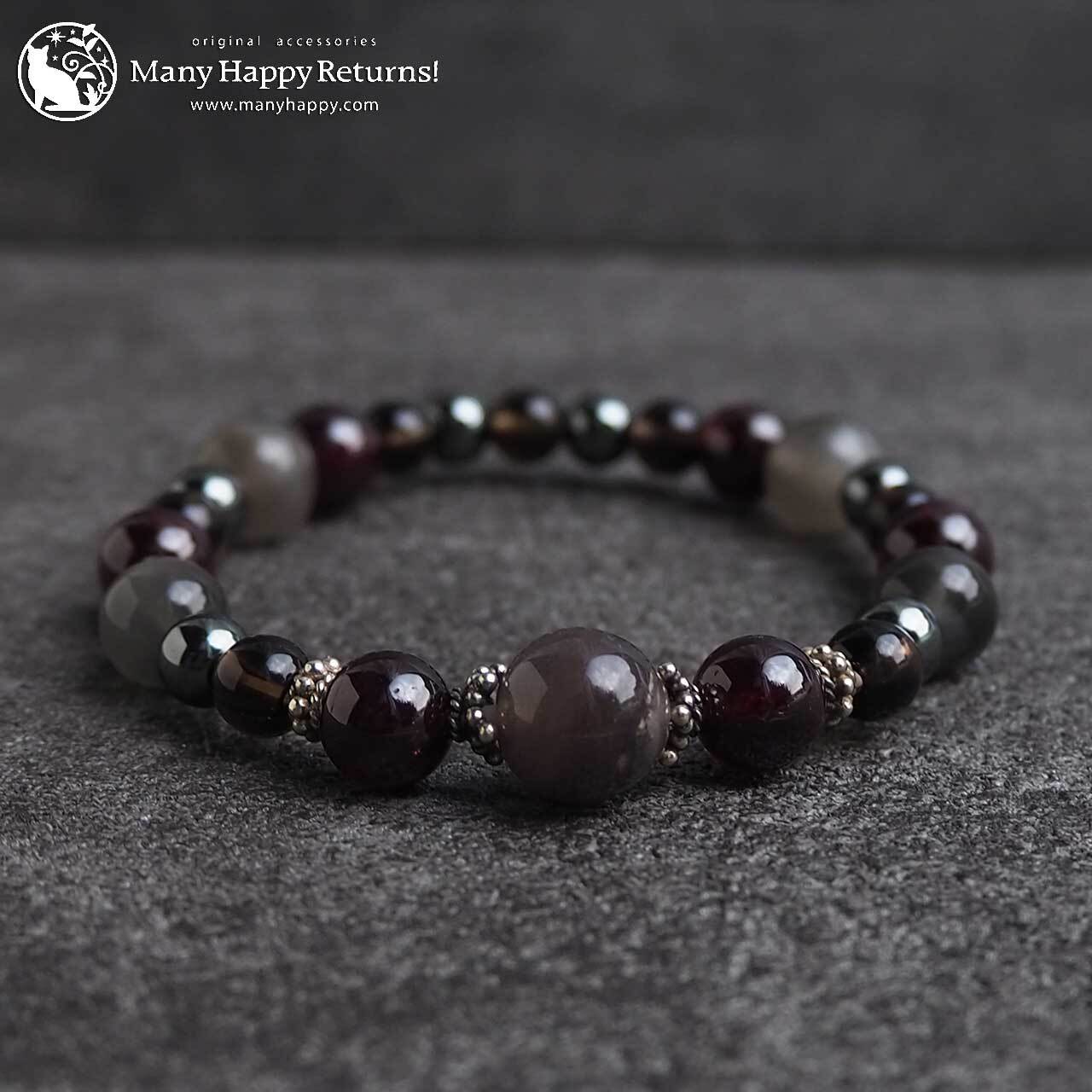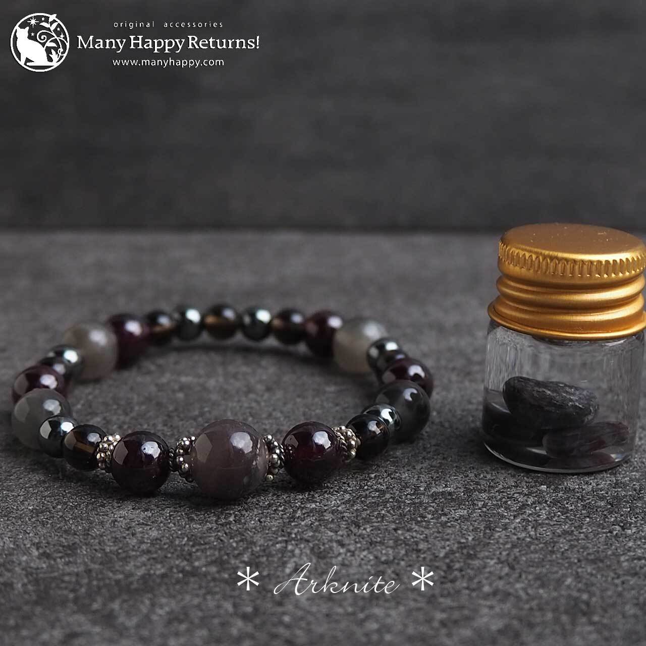 アークナイトをメインに、スターガーネット、ブラックムーンストーン、ヘマタイトを合わせたスピリチュアルブレス。