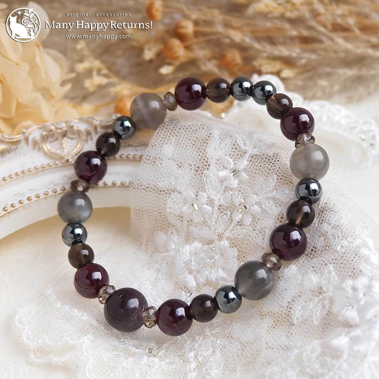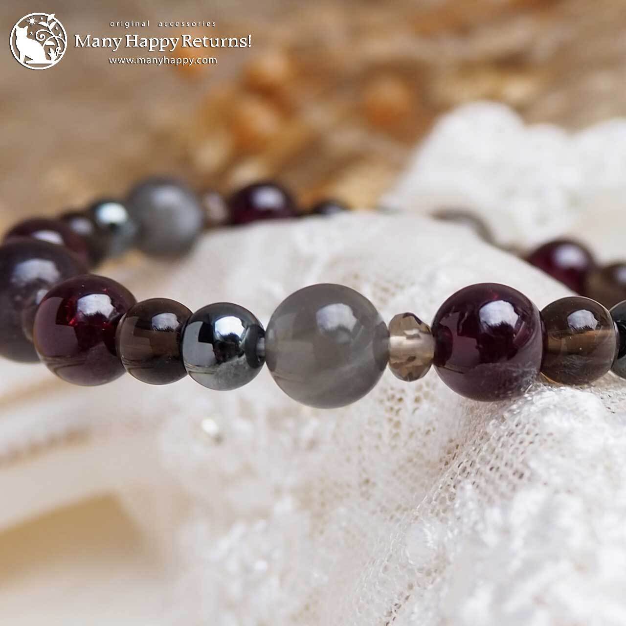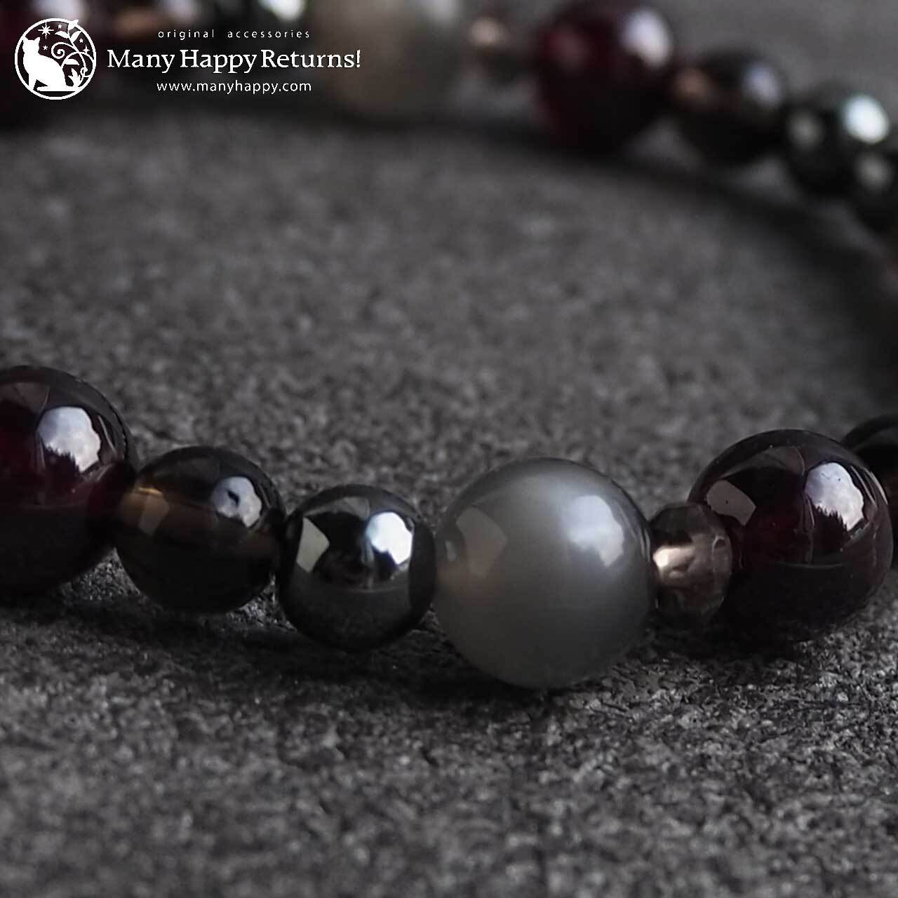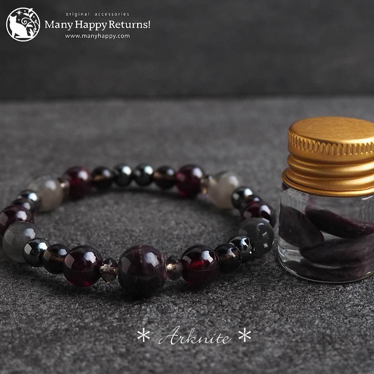 アークナイトをメインに、スターガーネット、ブラックムーンストーン、ヘマタイトを合わせたスピリチュアルブレス。