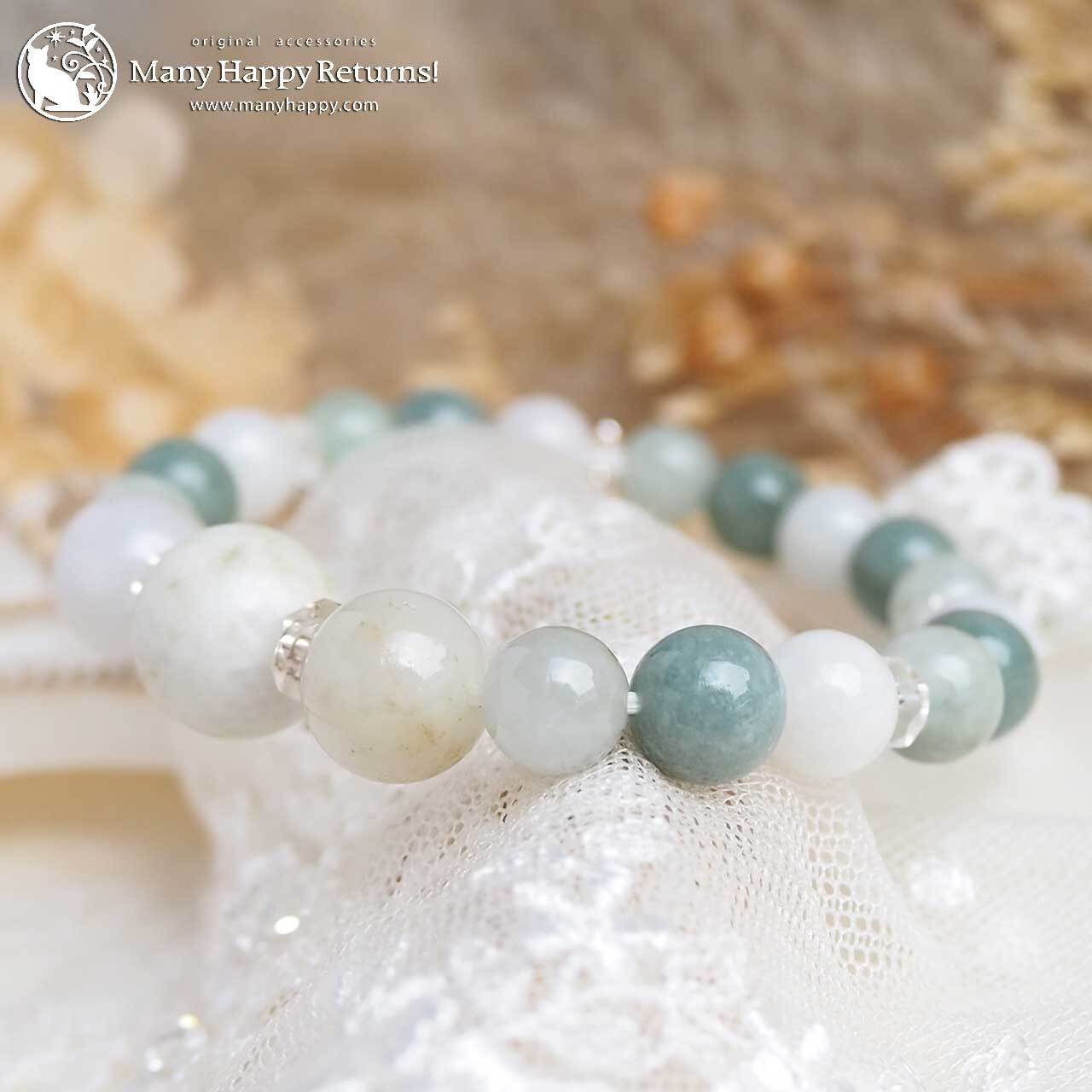 知恵と安らぎの石といわれる翡翠は精神面のバランスを保って感情を安定させ、情緒を豊かにすると 言われています。 古来より護符として使われていた石で、日本では縄文時代から愛されてきた石です。