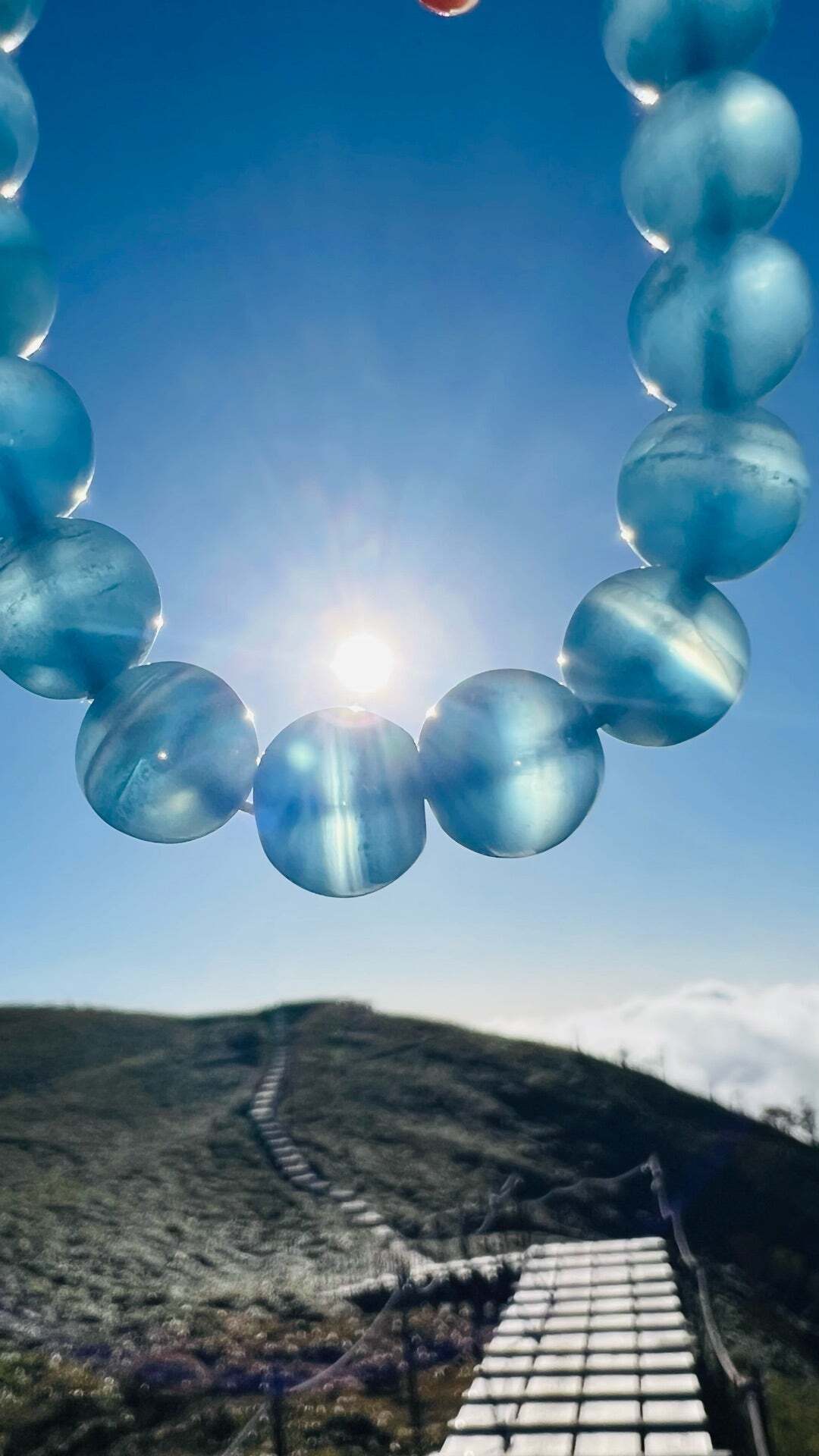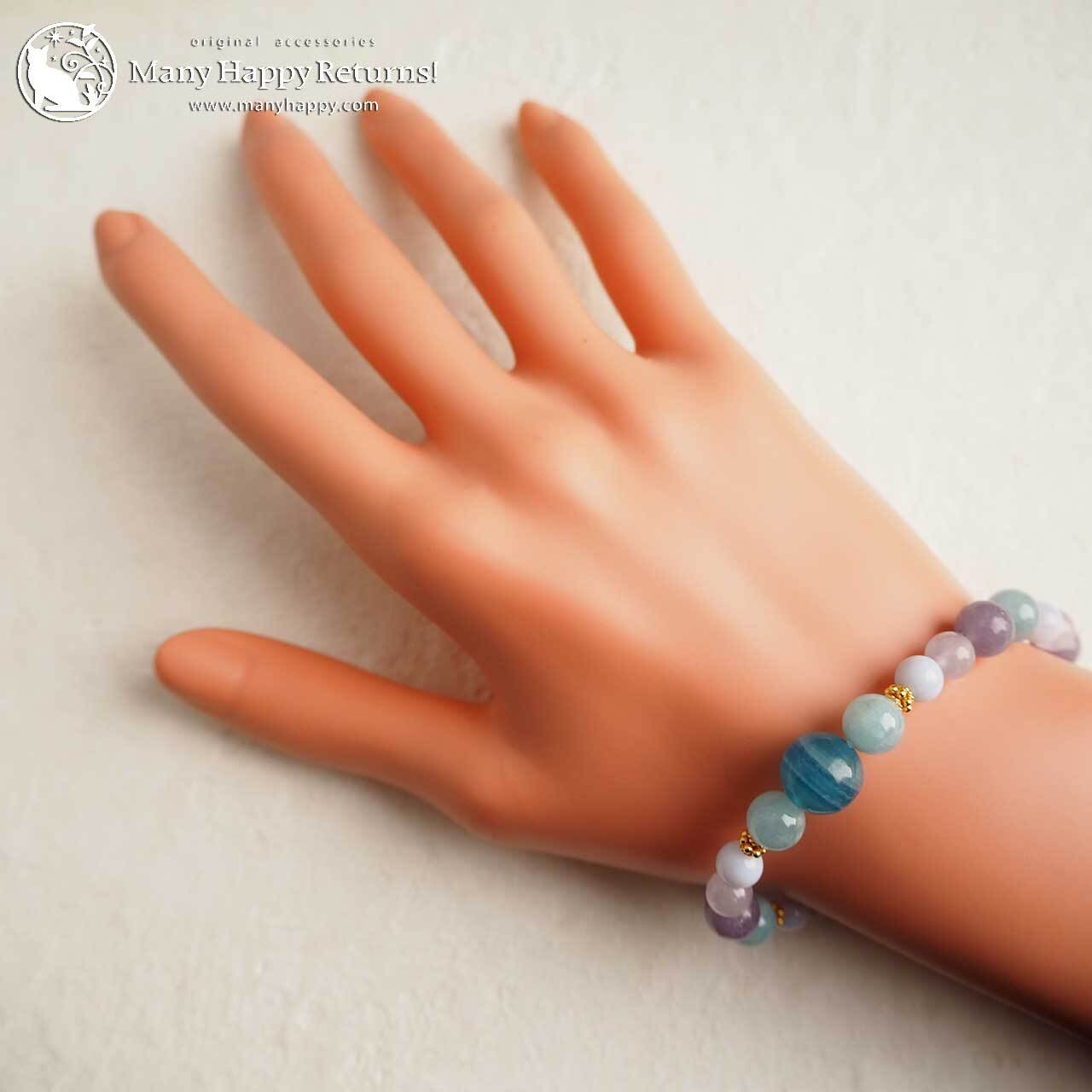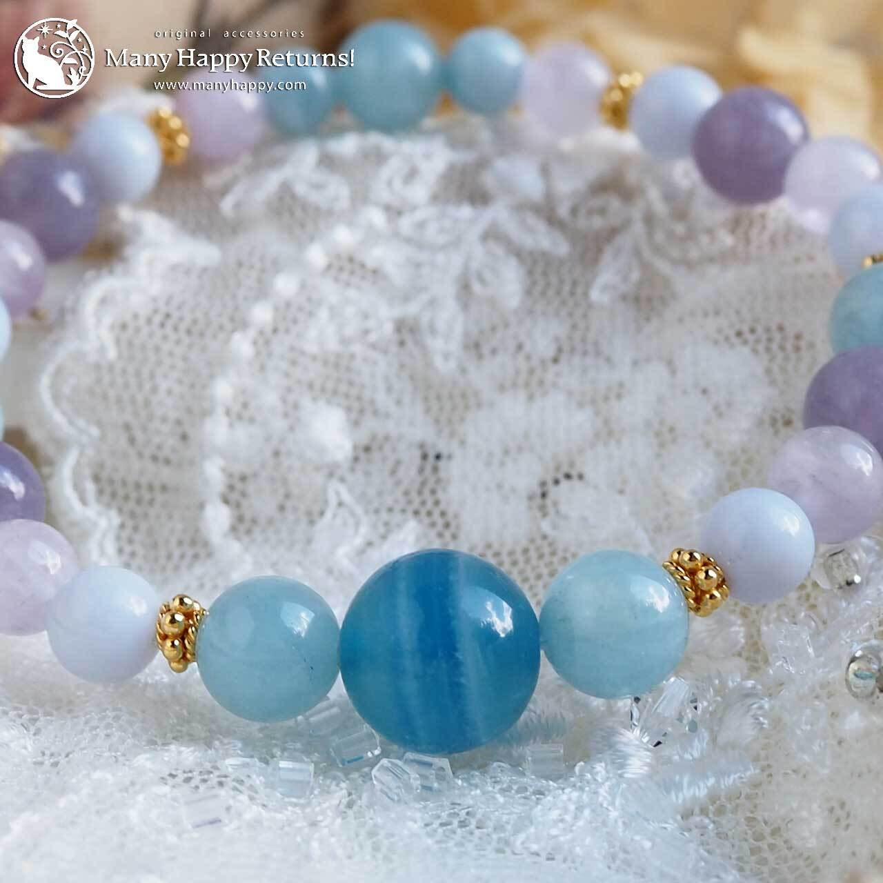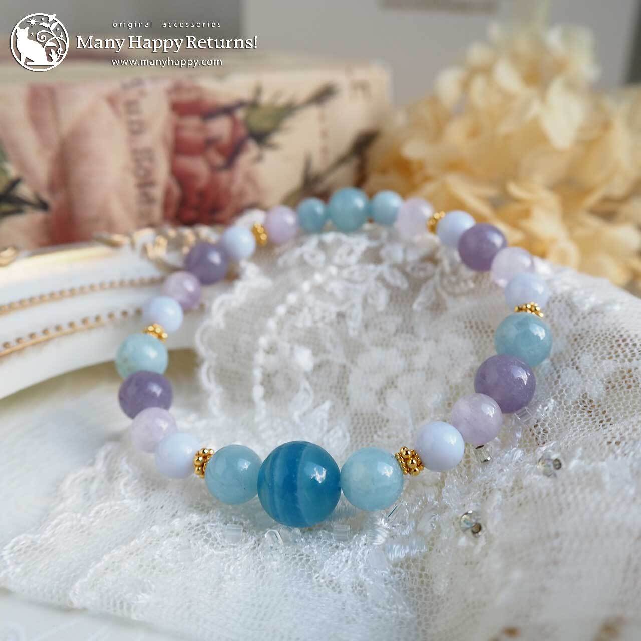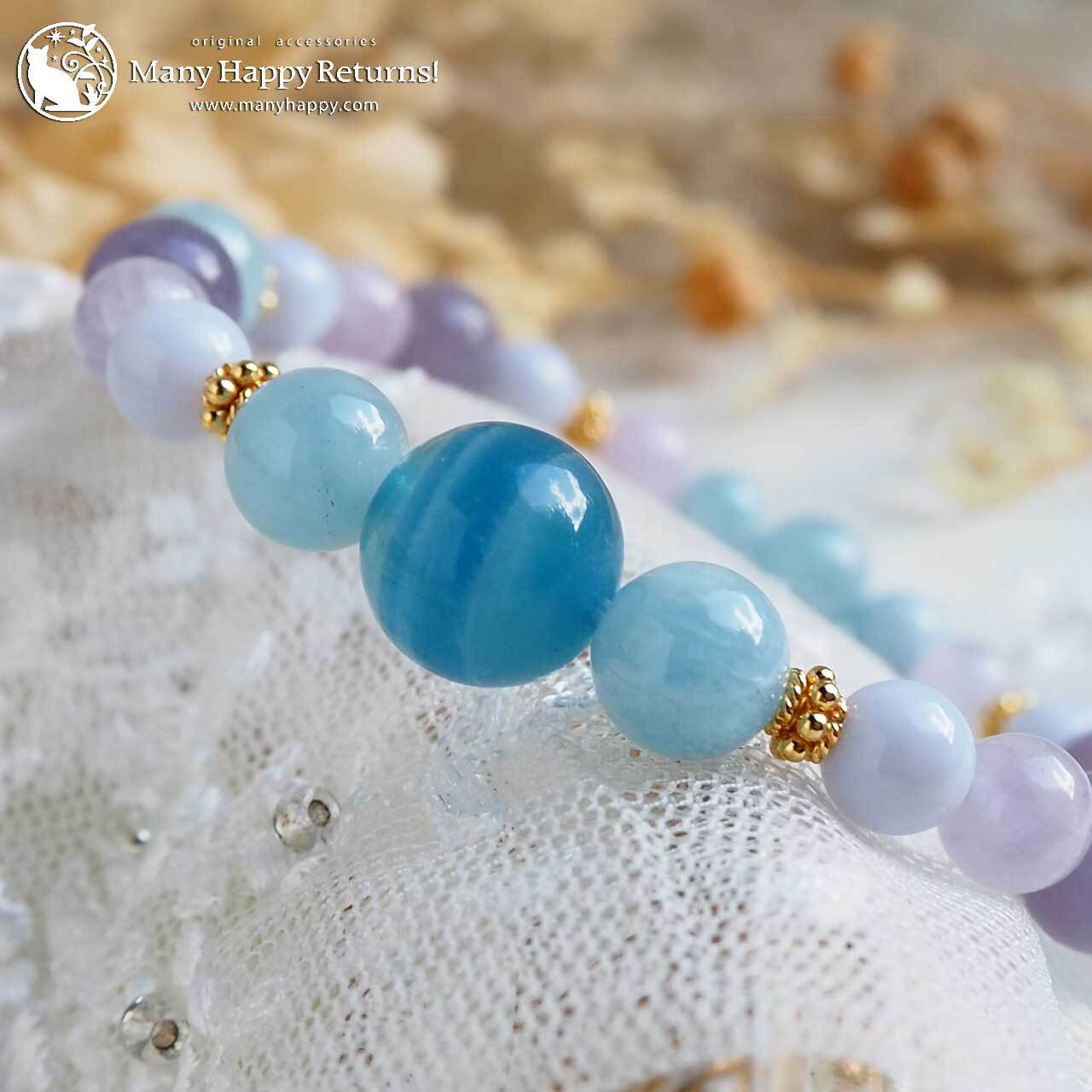 剣山チャージのブルーカルサイトをメインに、パステルカラーのいしたちを合わせたアミュレットブレス。