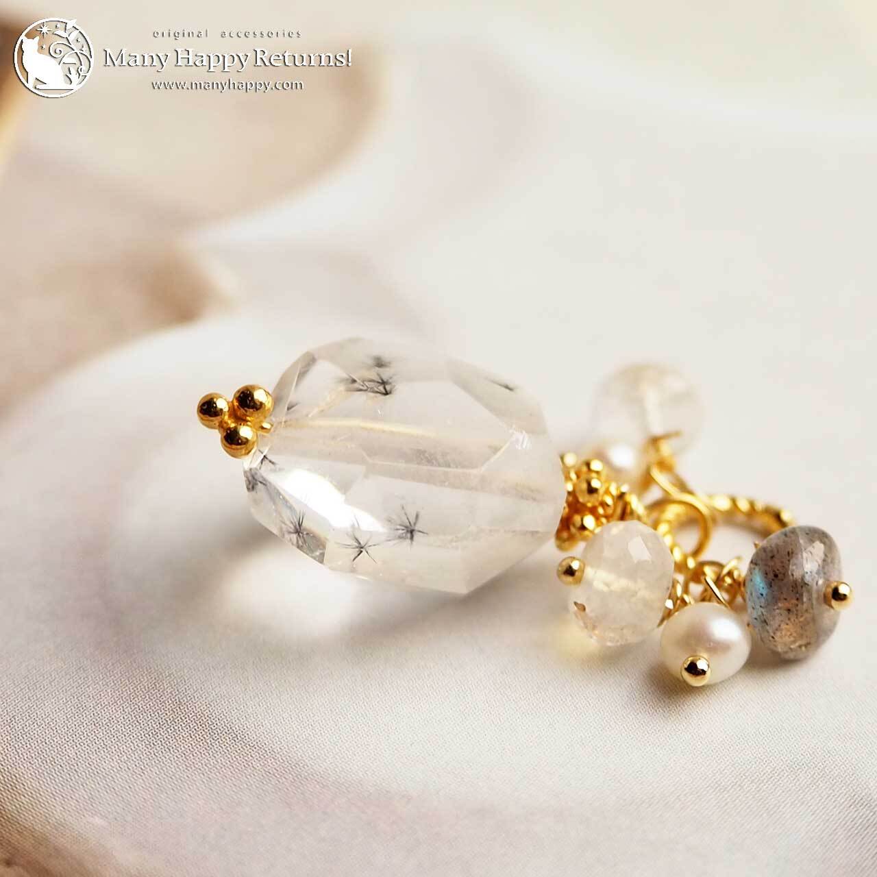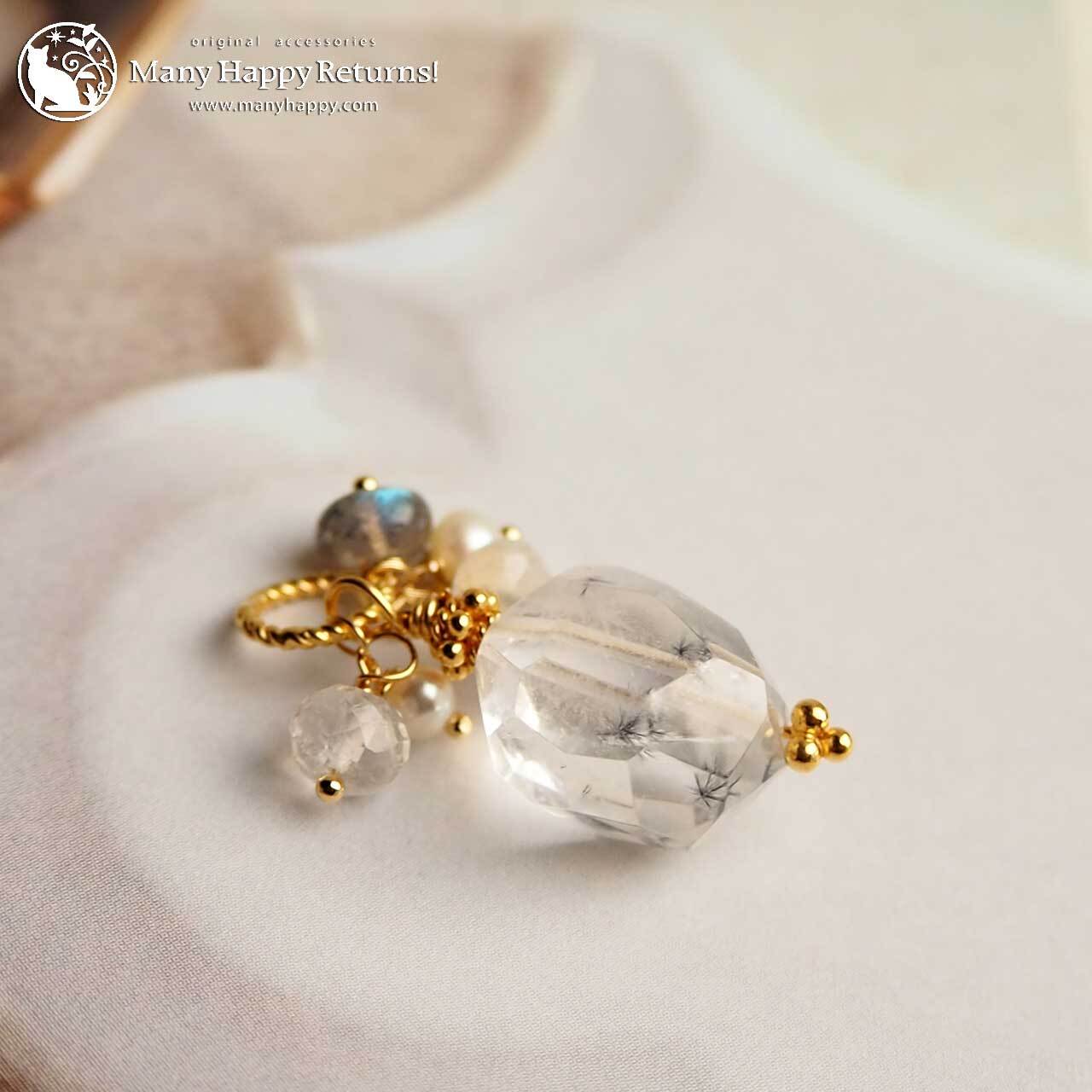 パーツ*ホーランダイトin クォーツ14ミリ・淡水パール2ミリ・ブルームーンストーンボタンカット・ラブラドライトボタンカット