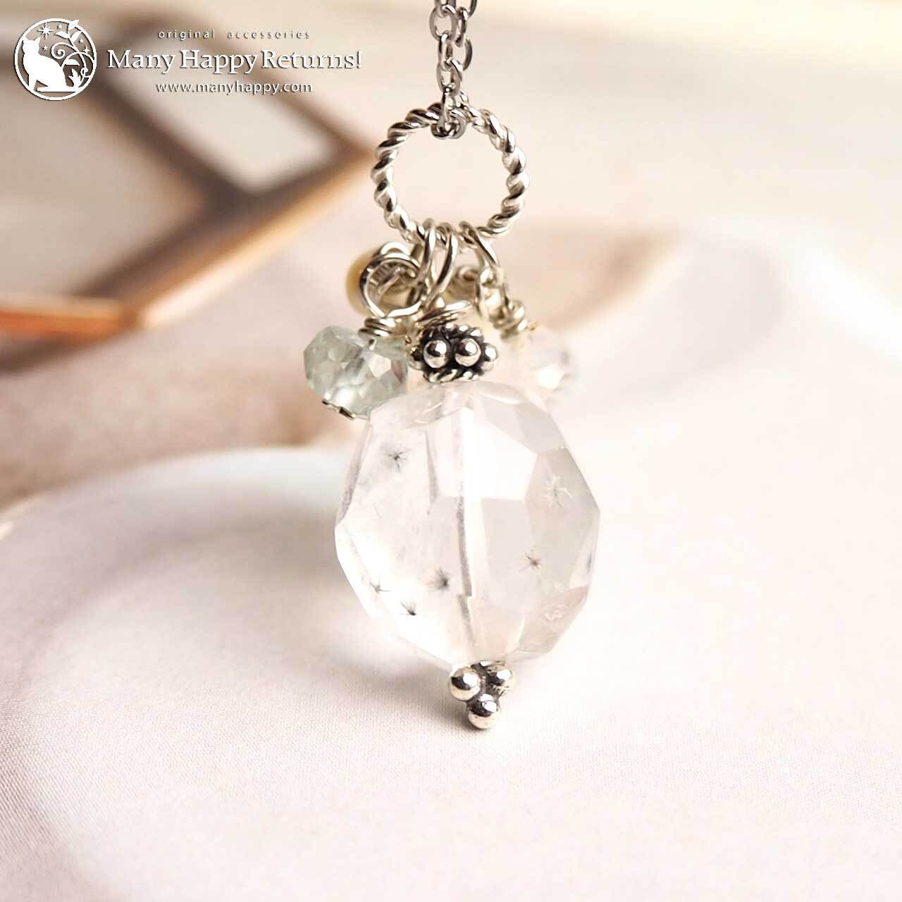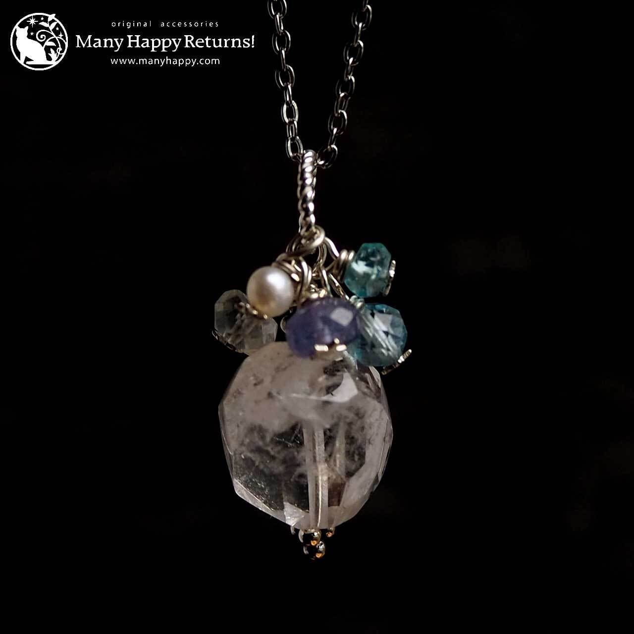 剣山チャージの星入り水晶にシラーの美しい石たちを添えたペンダントトップ。