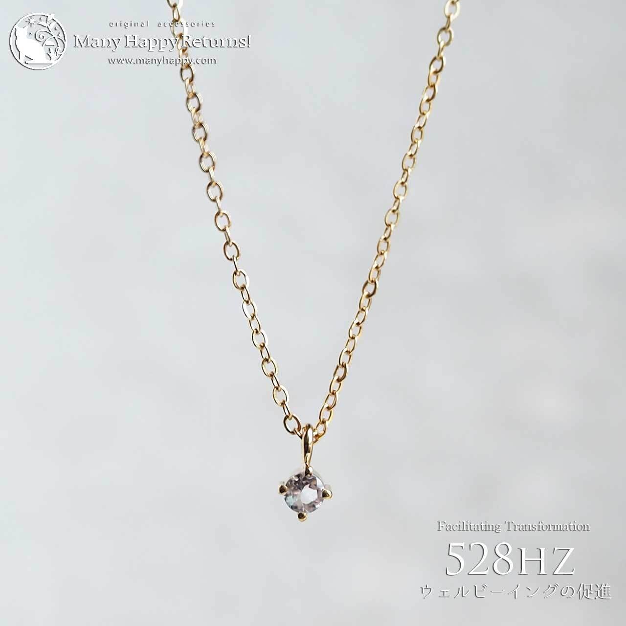 s-259 幸福感の促進528hz☆ペタライトラウンドブリリアント☆周波数ジュエリー☆18KGPプチネックレス
