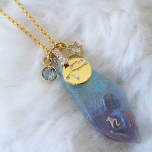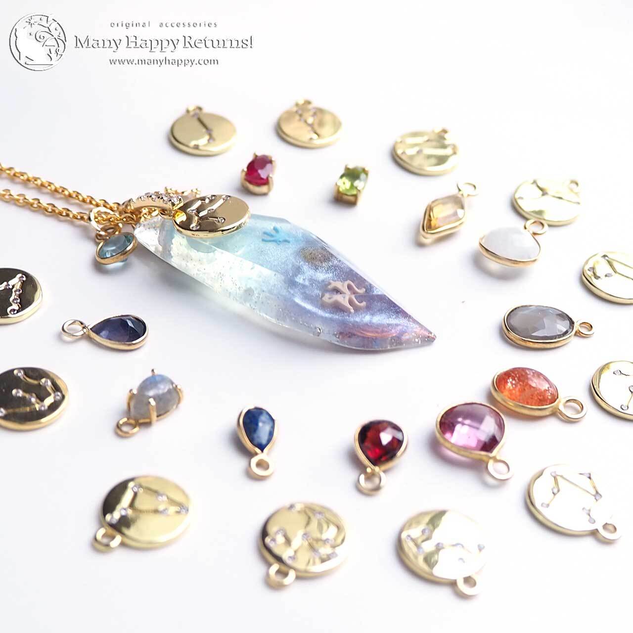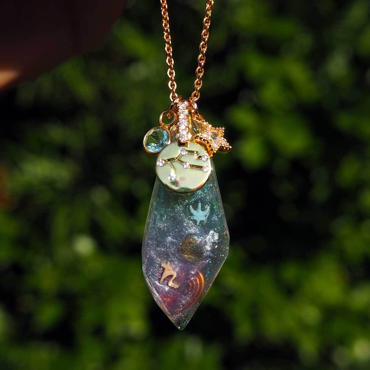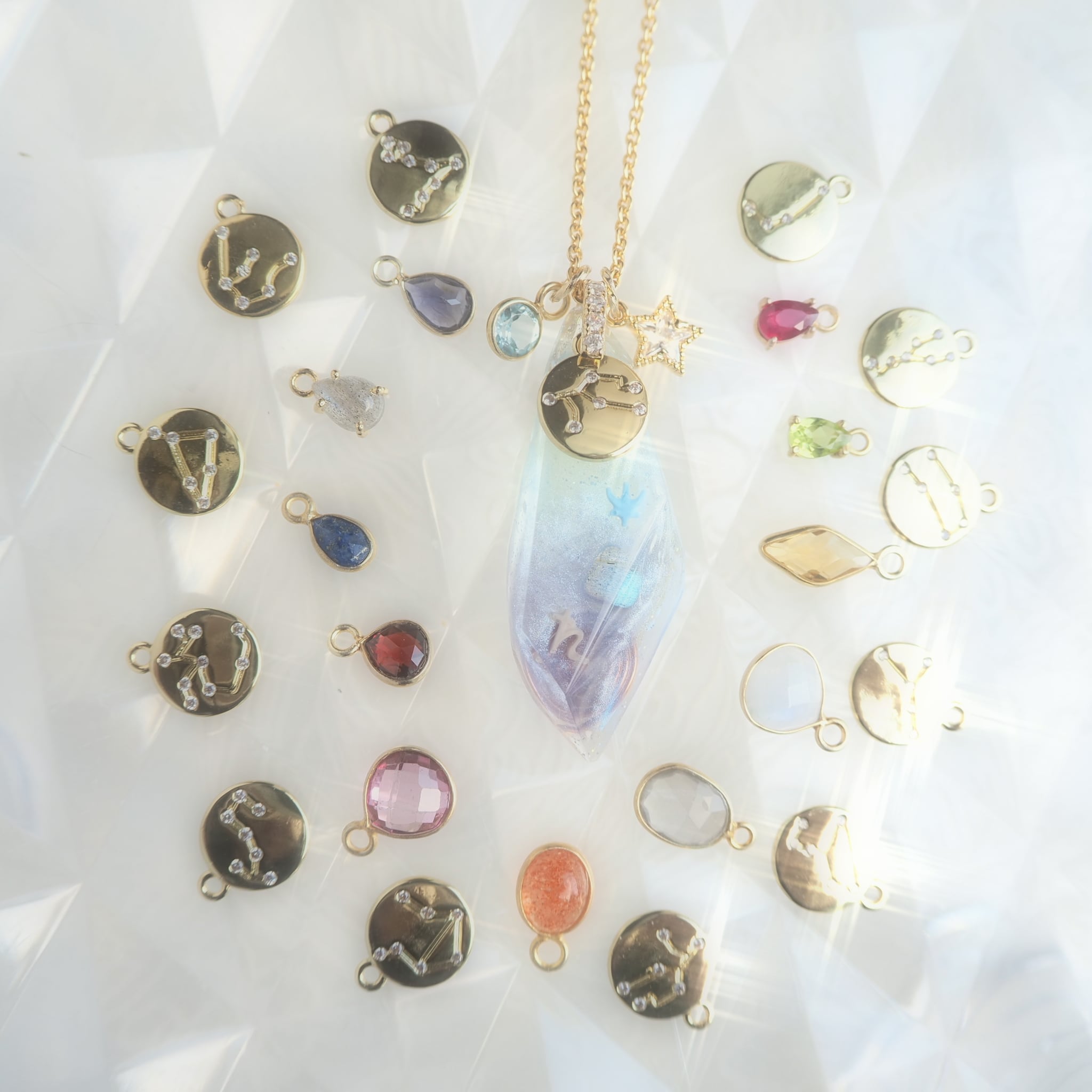 あなたの太陽星座のチャームと、あなたのトゥインクルフュージョンの宝石、そして星型ジルコニアのチャームを付けています。