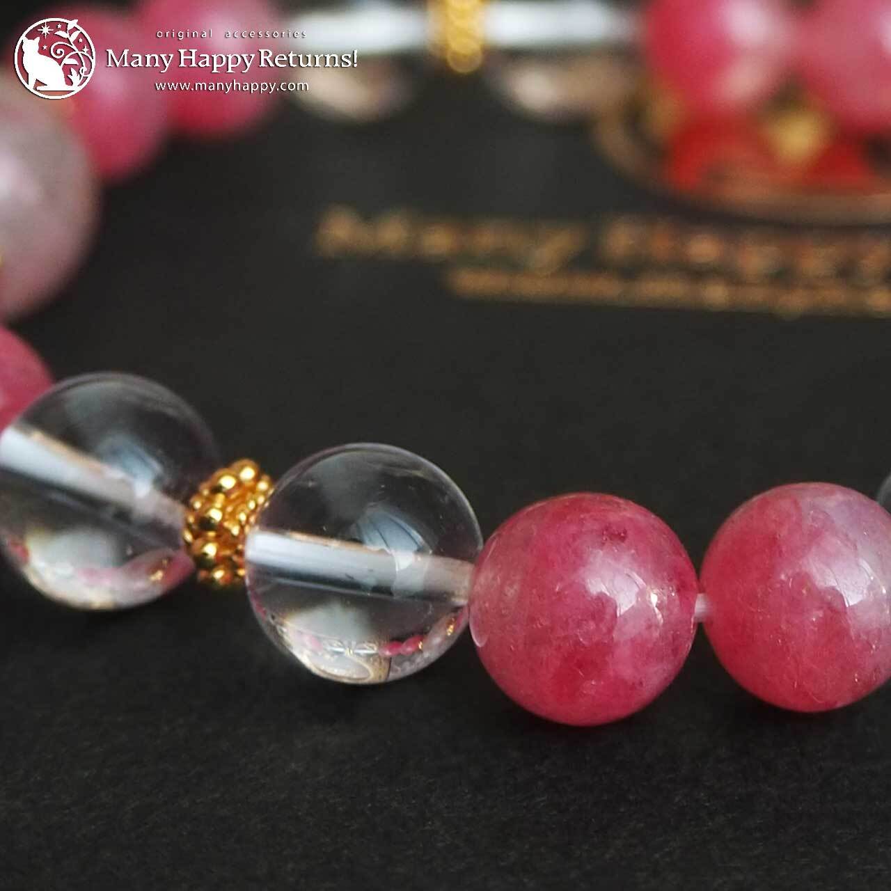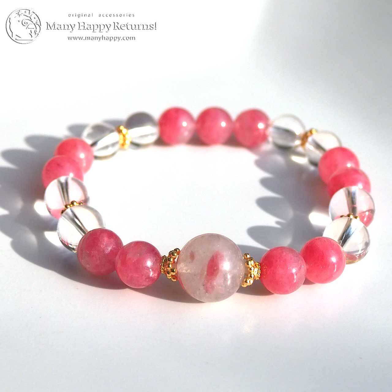 イチゴキャンディのようなロードナイトシリカの大粒をメインに、コロンビアレムリアンを贅沢に使ったピンクブレス。