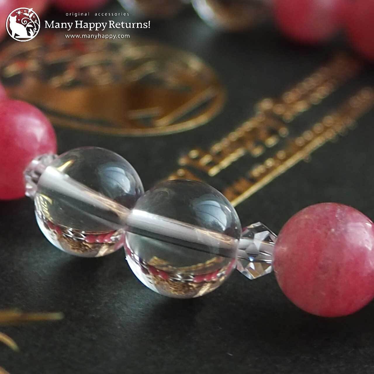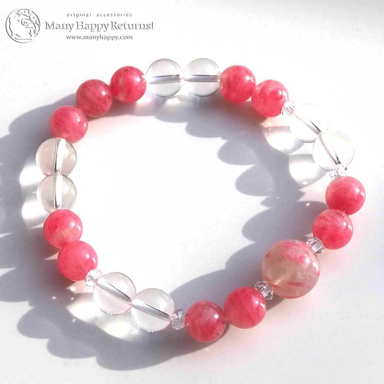 イチゴキャンディのようなロードナイトシリカの大粒をメインに、コロンビアレムリアンを贅沢に使ったピンクブレス。