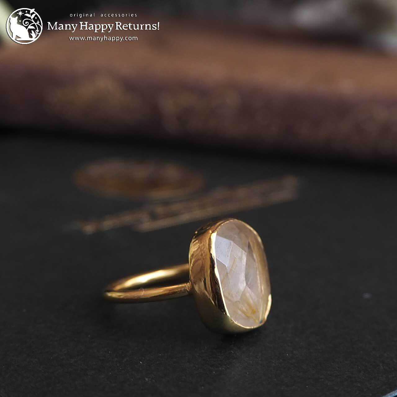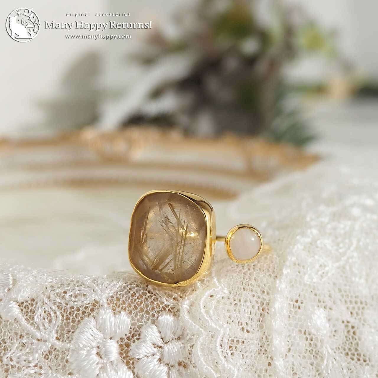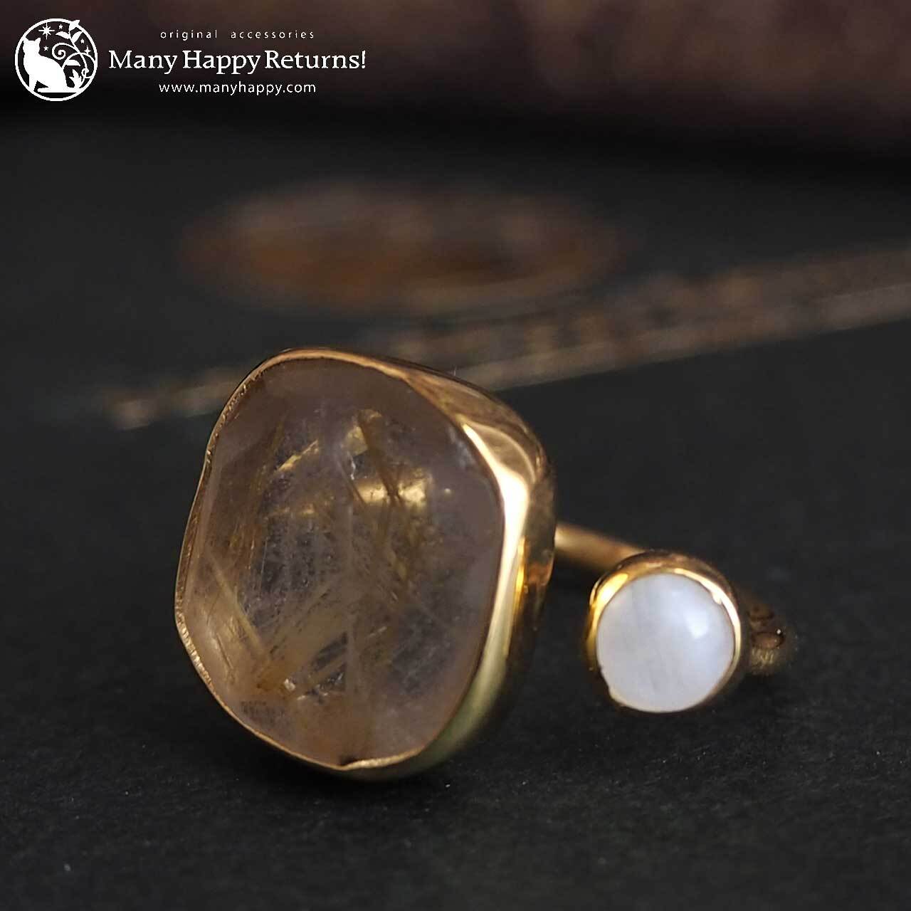 j-438 高品質タイチンルチル&ブルームーンストーン☆K18Vermeilリング