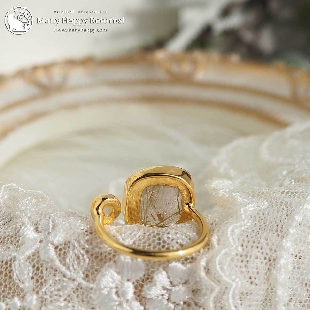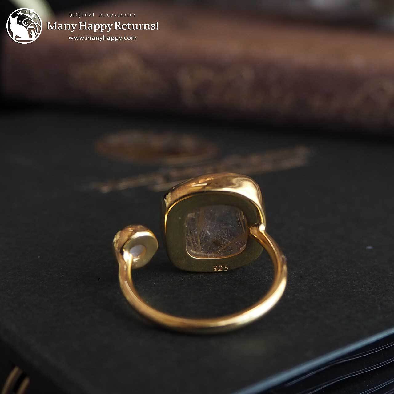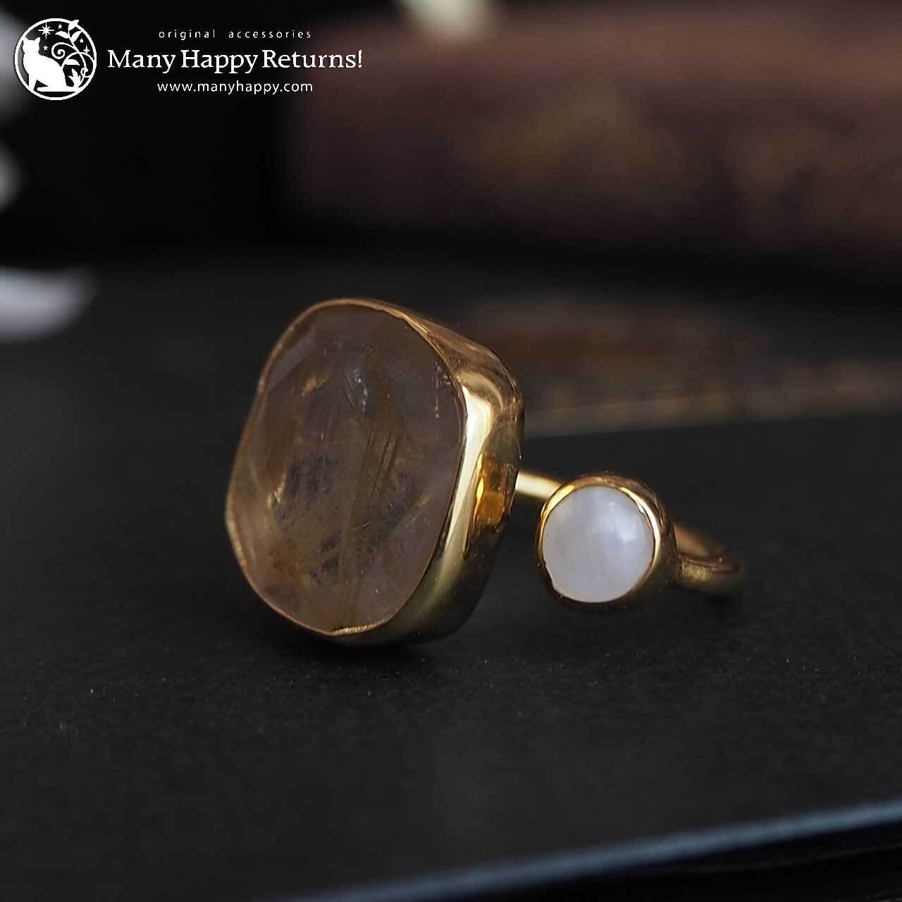 j-438 高品質タイチンルチル&ブルームーンストーン☆K18Vermeilリング