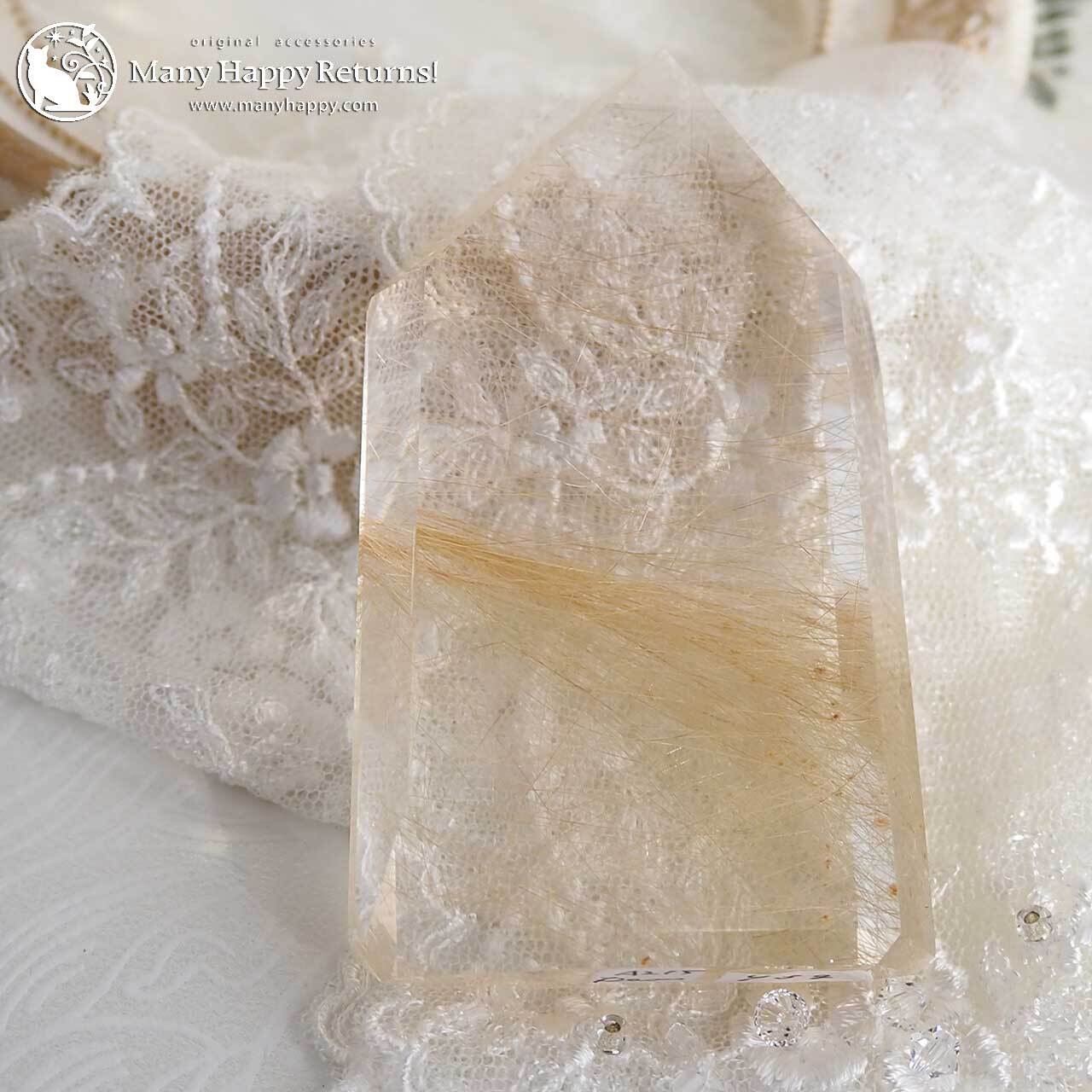 「運命を切り開く黄金の光」を宿す水晶といわれ、内包された金色の針が、停滞した流れを突き動かし、人生に力強い前進のエネルギーをもたらすと伝えられています。