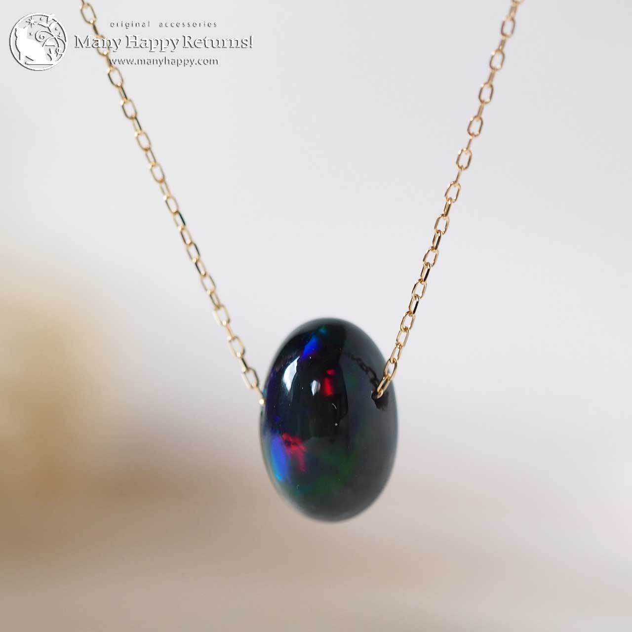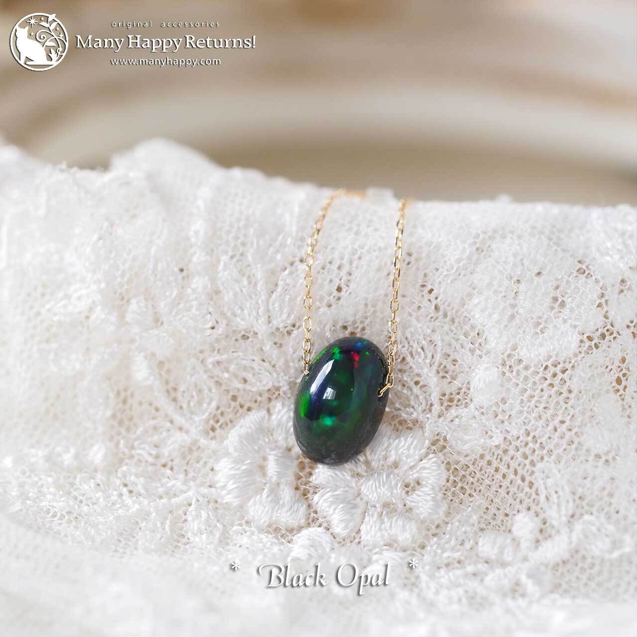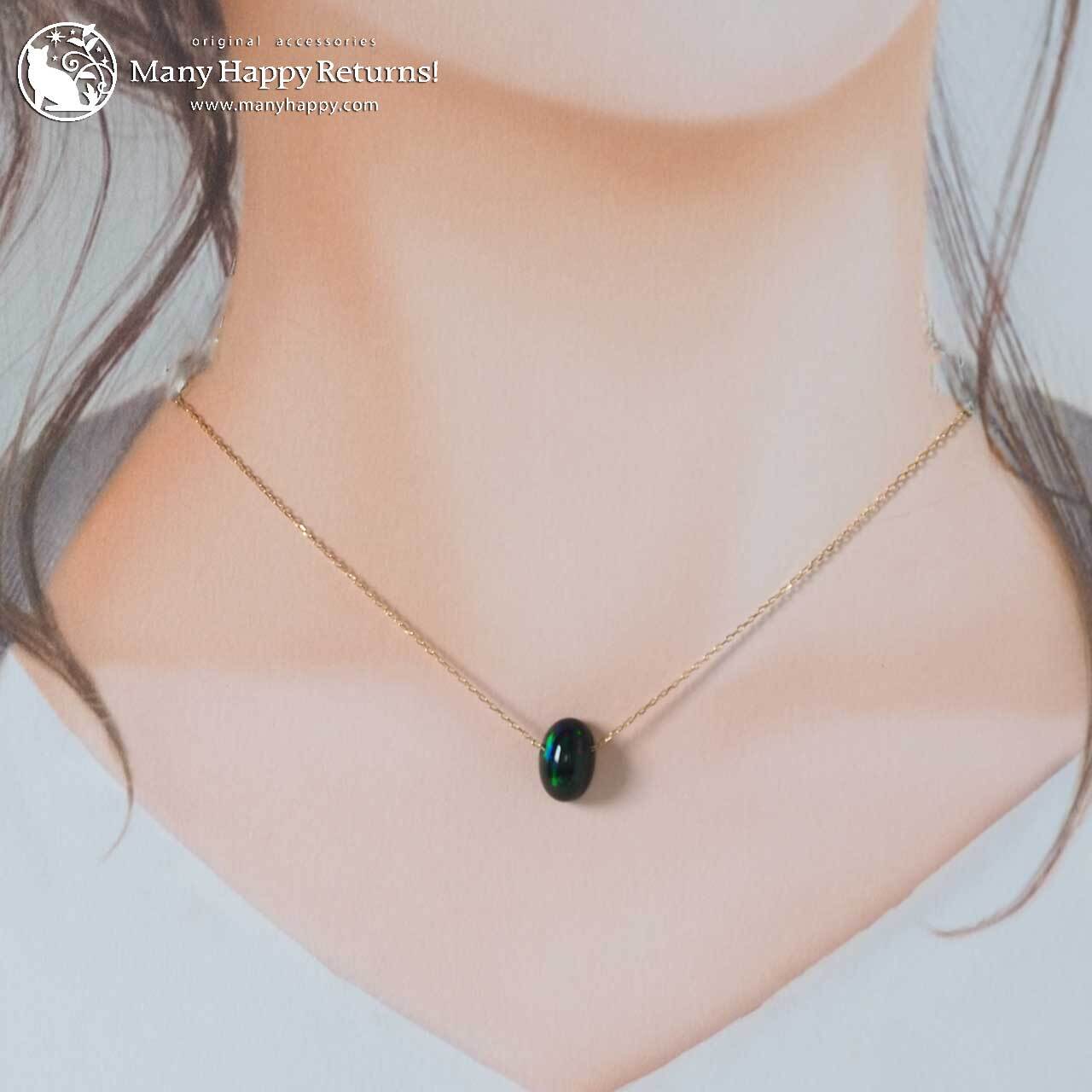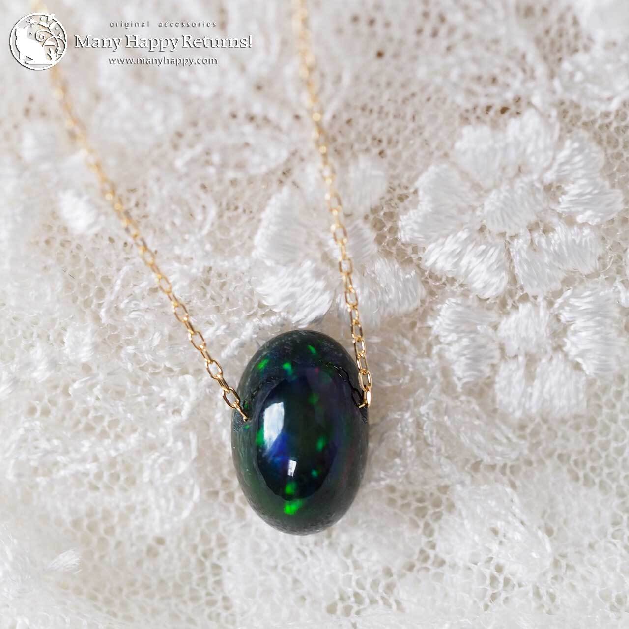 j-451 高品質ブラックオパール☆K18カボションネックレス