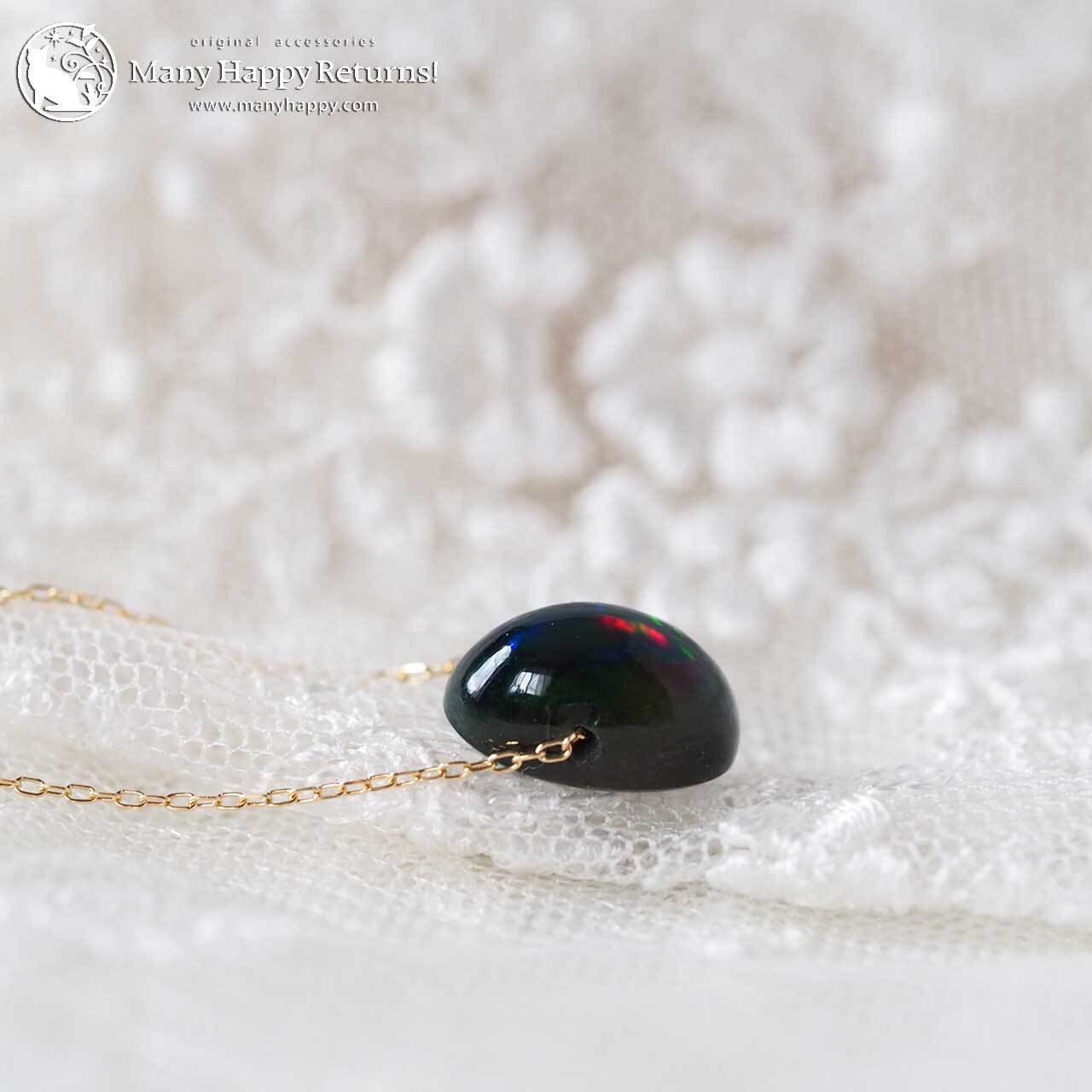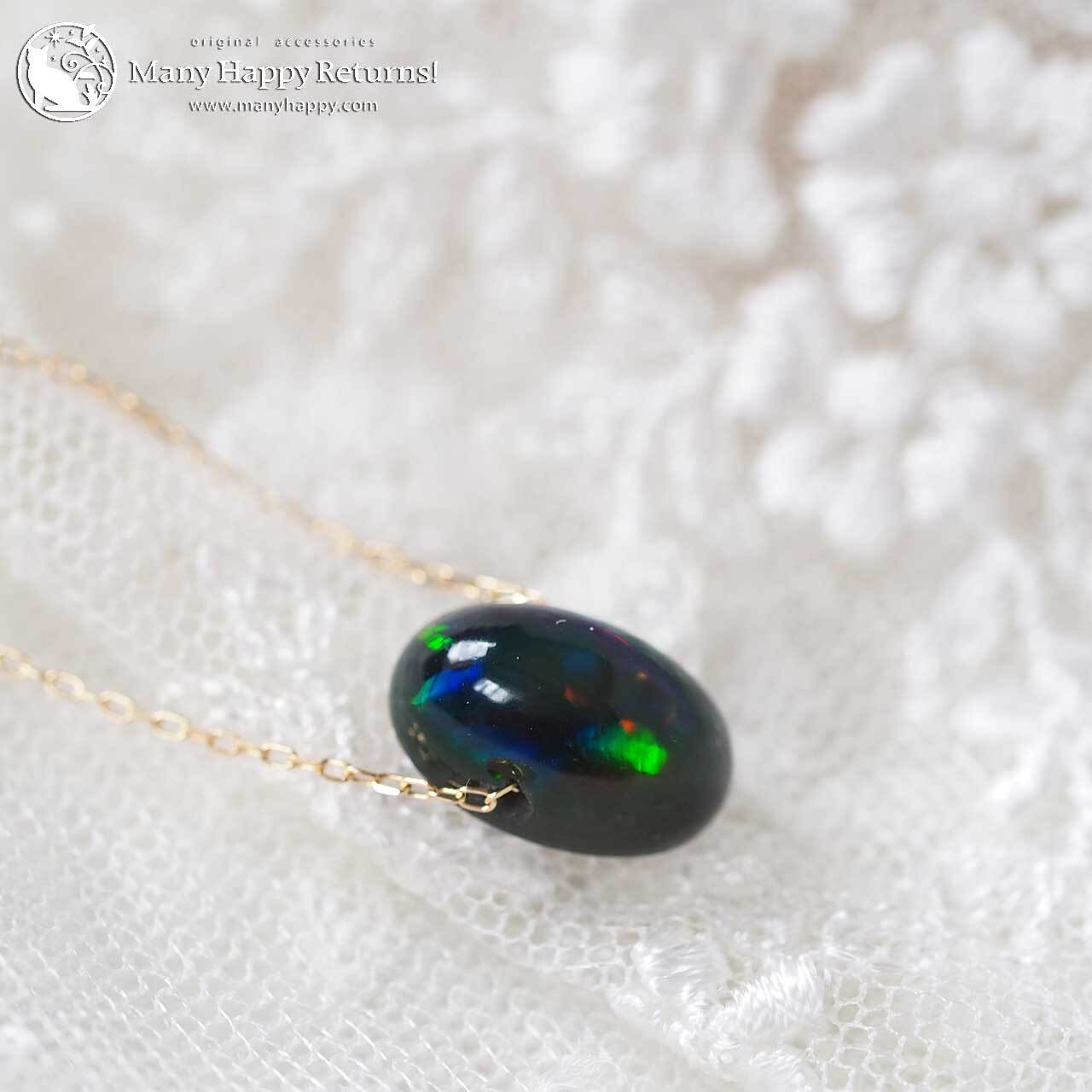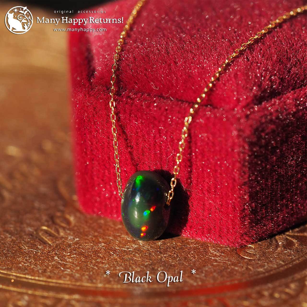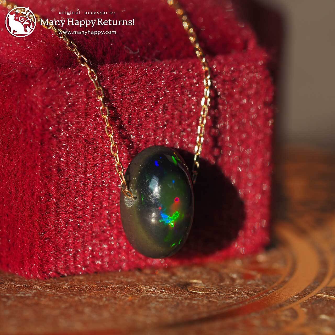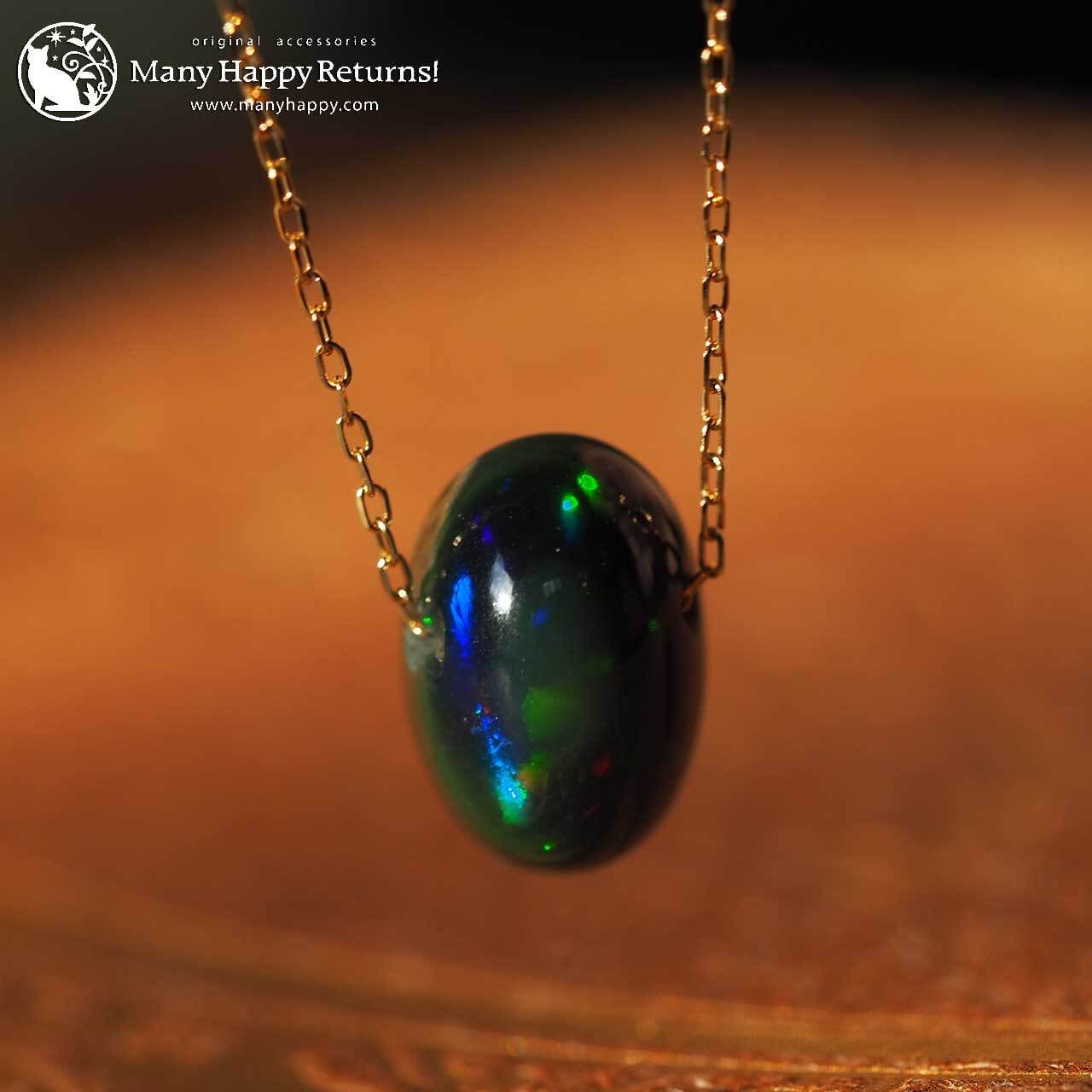 j-451 高品質ブラックオパール☆K18カボションネックレス