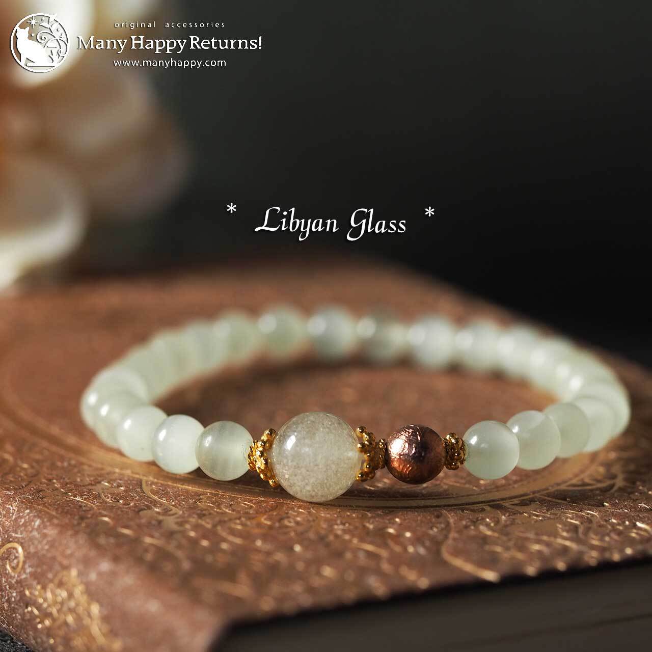 リビアングラスとギベオンをメインに、6ミリのグリーンカルサイトを全体に使った、細身のブレスレット。