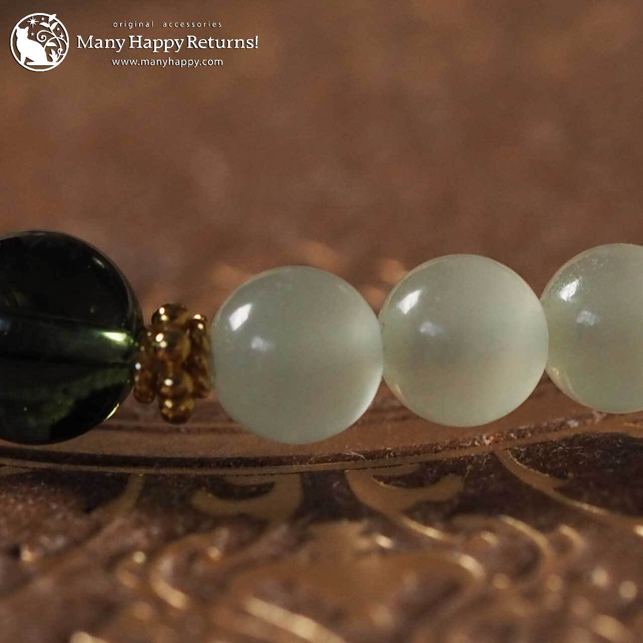 パーツ*リビアングラス9ミリ・モルダバイト6ミリ・グリーンカルサイト6ミリ