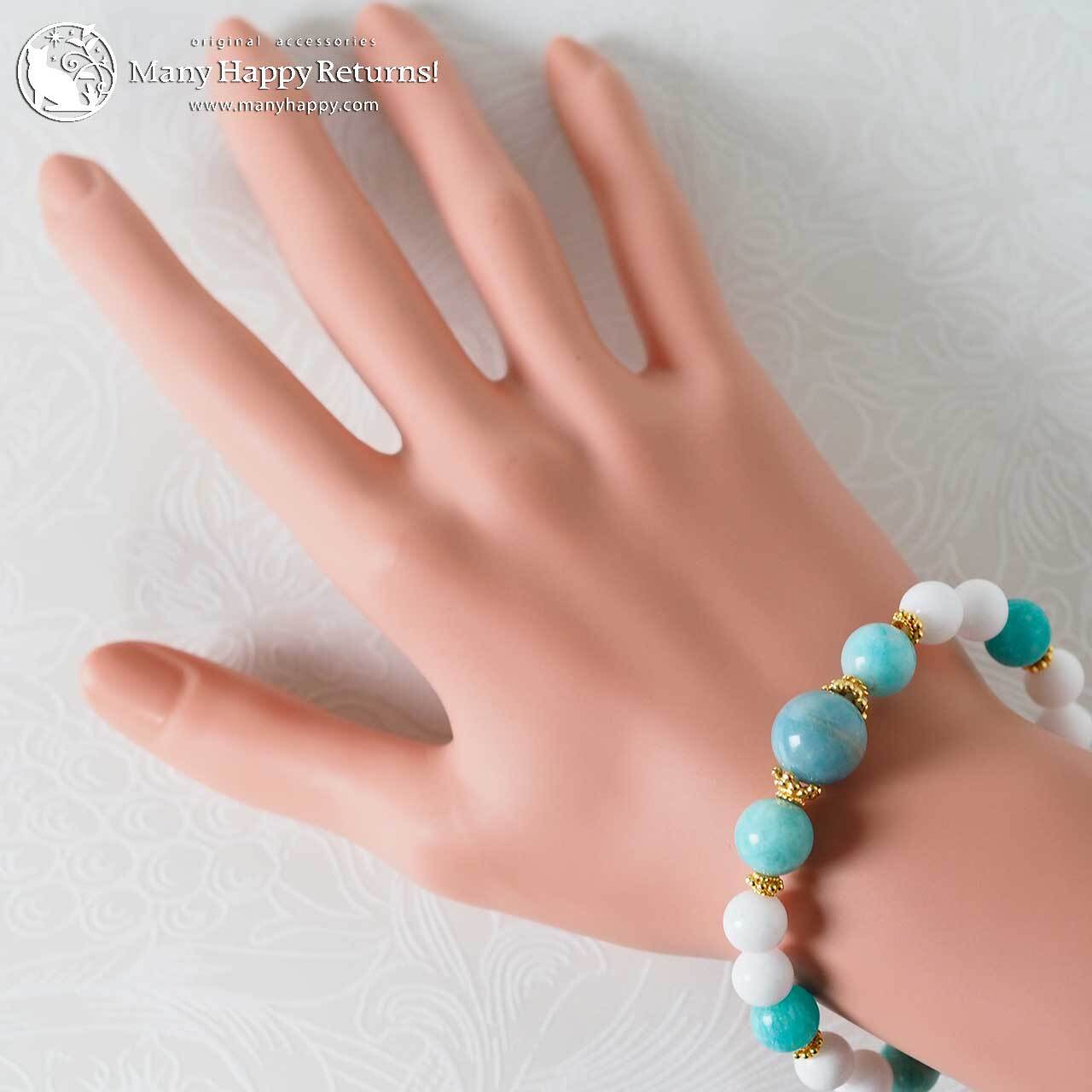 トロレアイトとペルーアマゾナイト、ホワイトジェイドを合わせたスピリチュアルブレス。