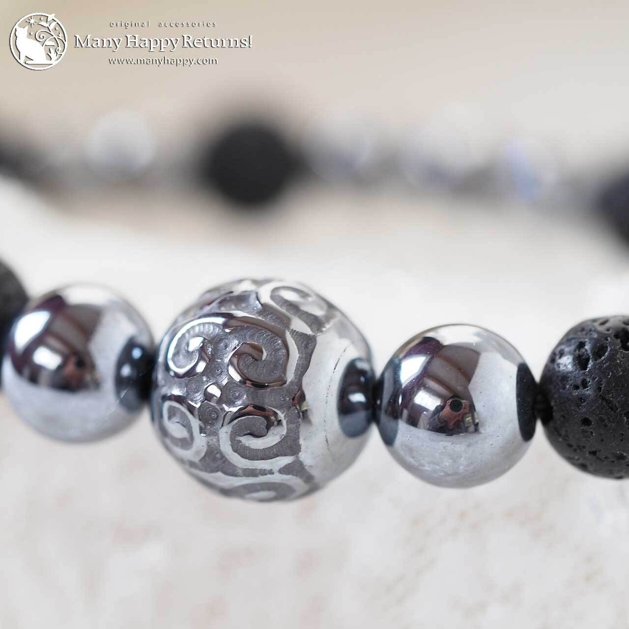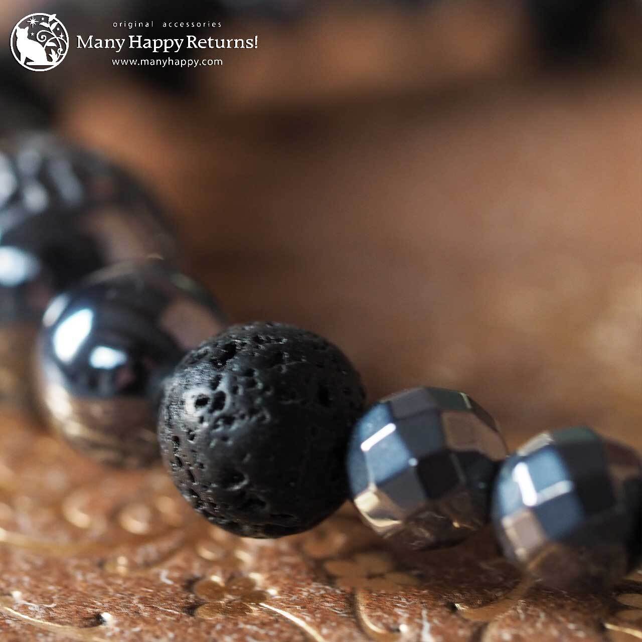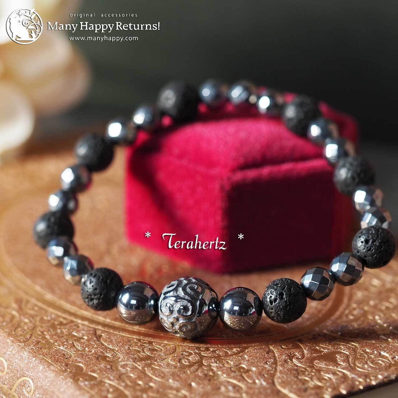 ba-7323 テラヘルツ回紋珠&富士山ラヴァ☆ストレッチブレス