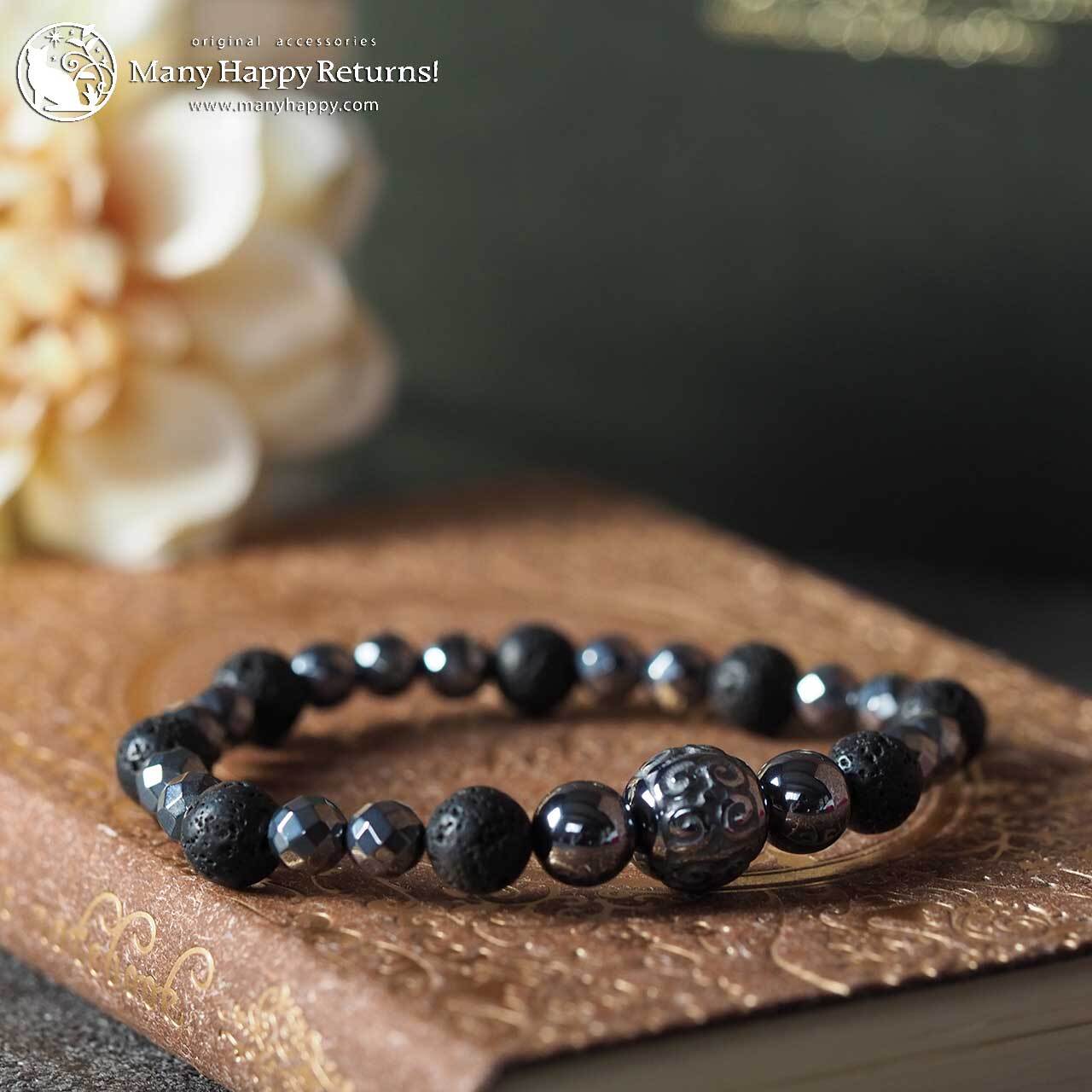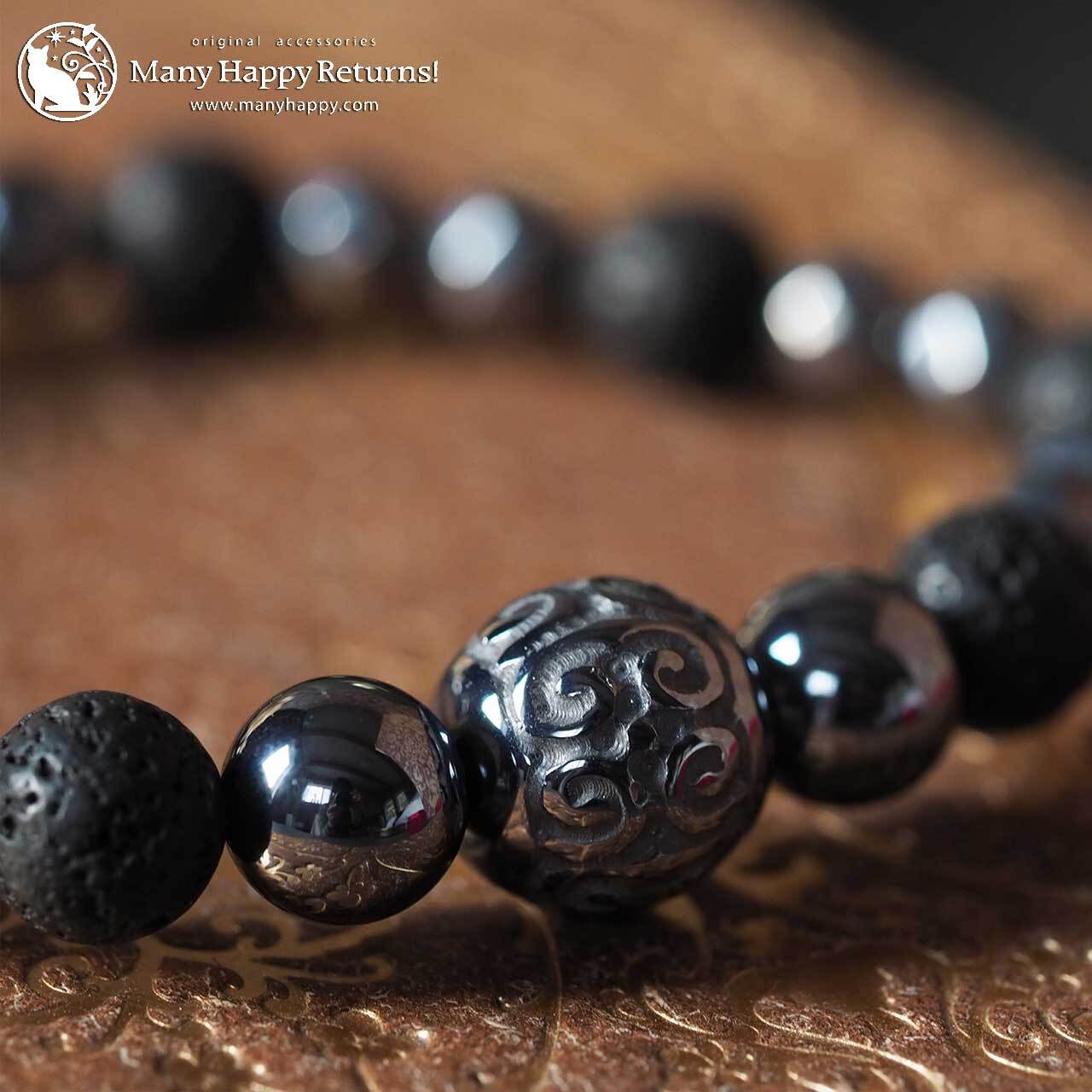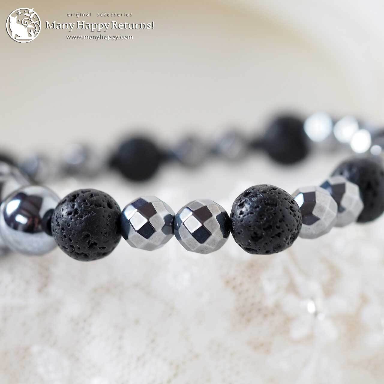 ba-7323 テラヘルツ回紋珠&富士山ラヴァ☆ストレッチブレス