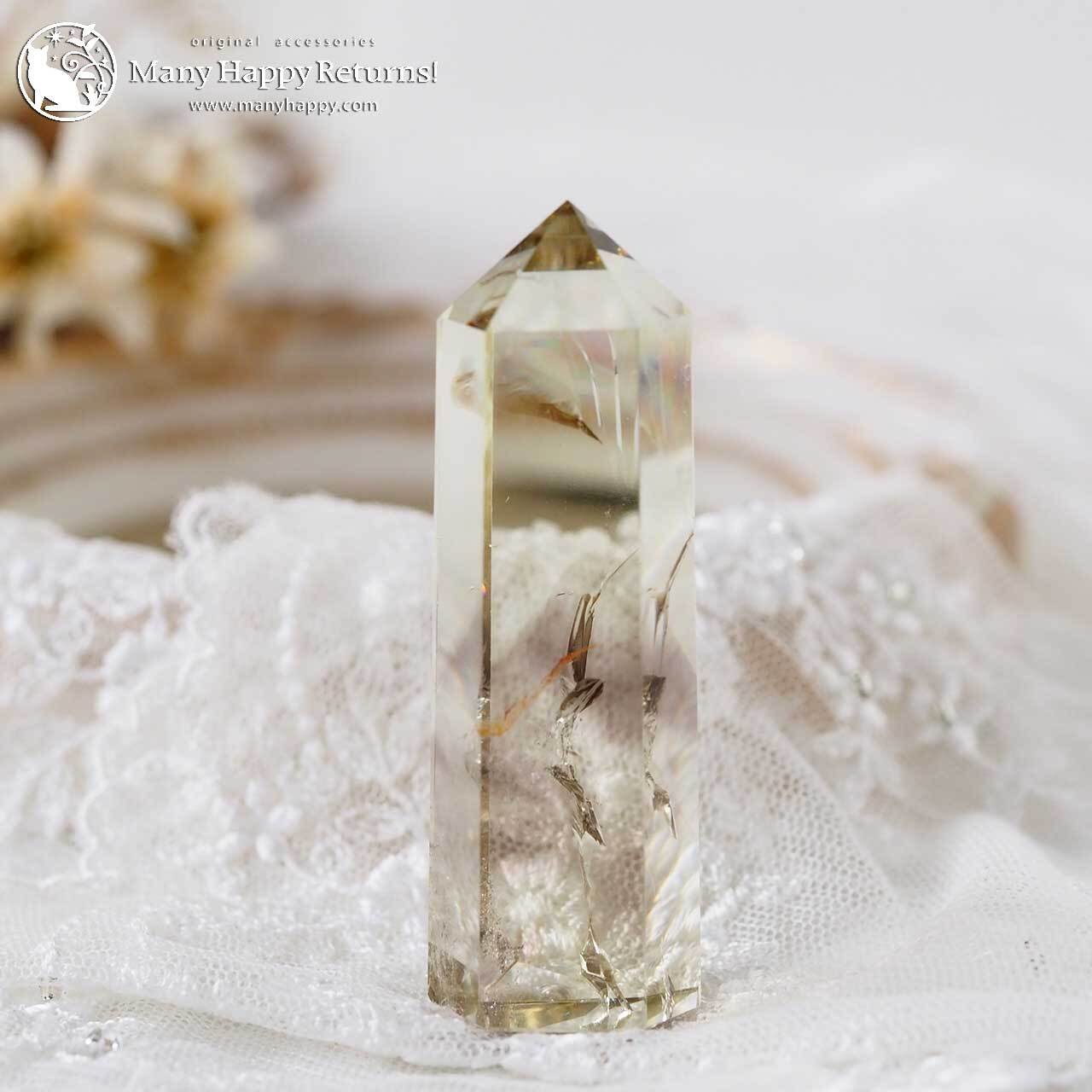 水晶が結晶するときに生じたゆがみや亀裂に光が当たることで生まれる虹色の輝きのあるもので、別名レインボークリスタルと呼ばれています。