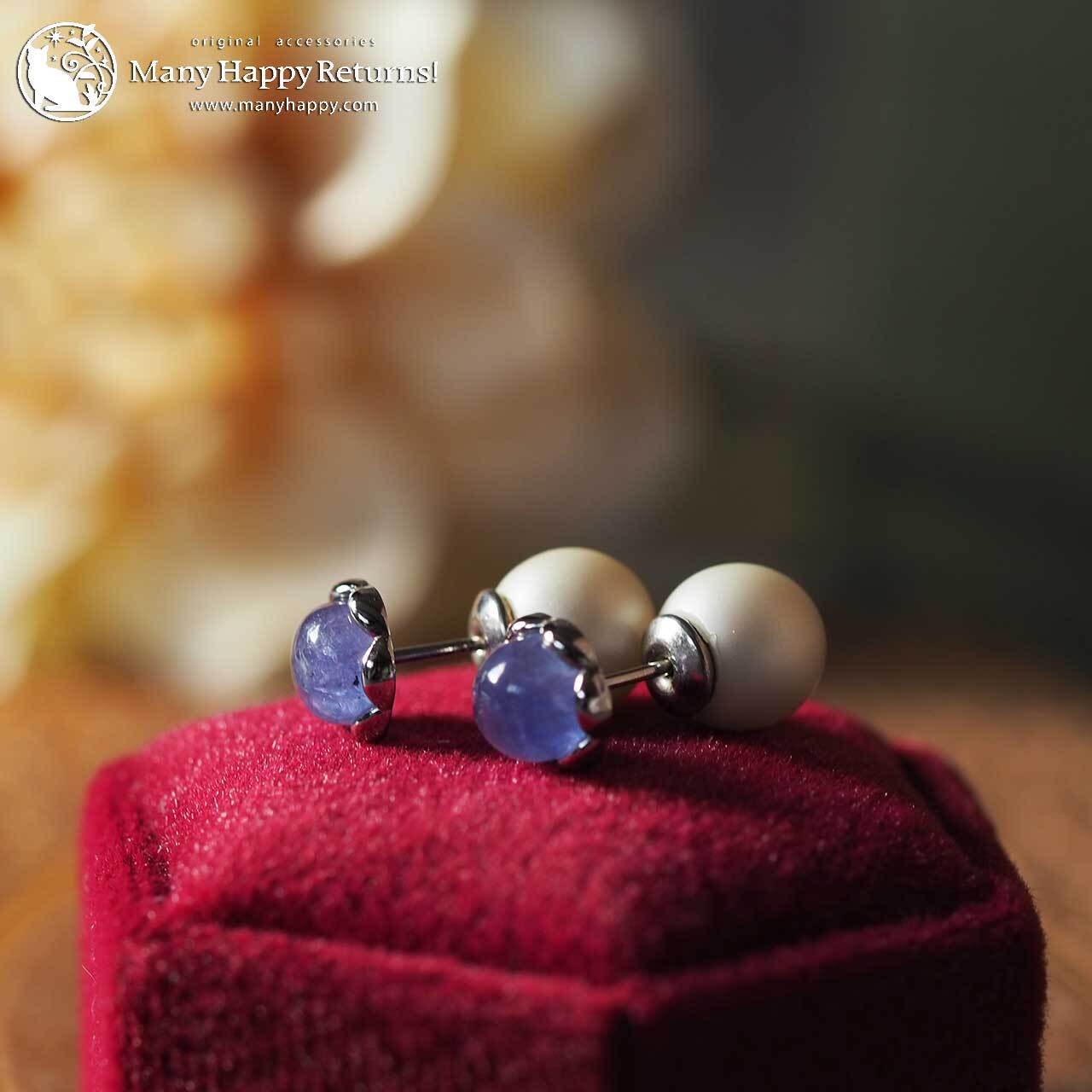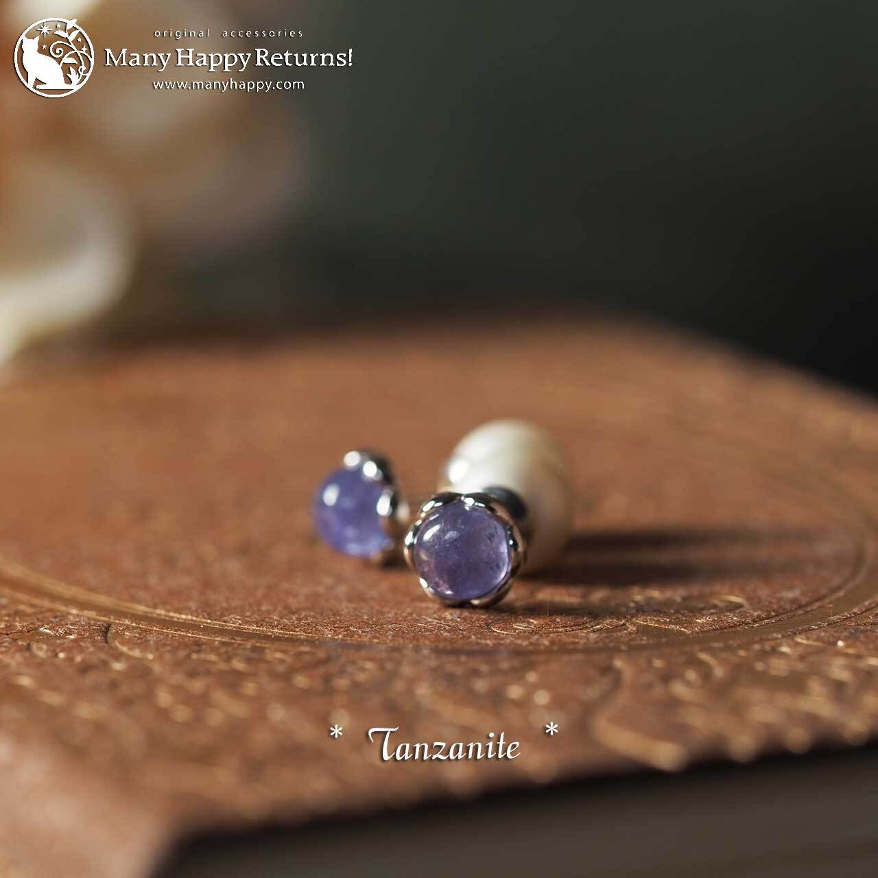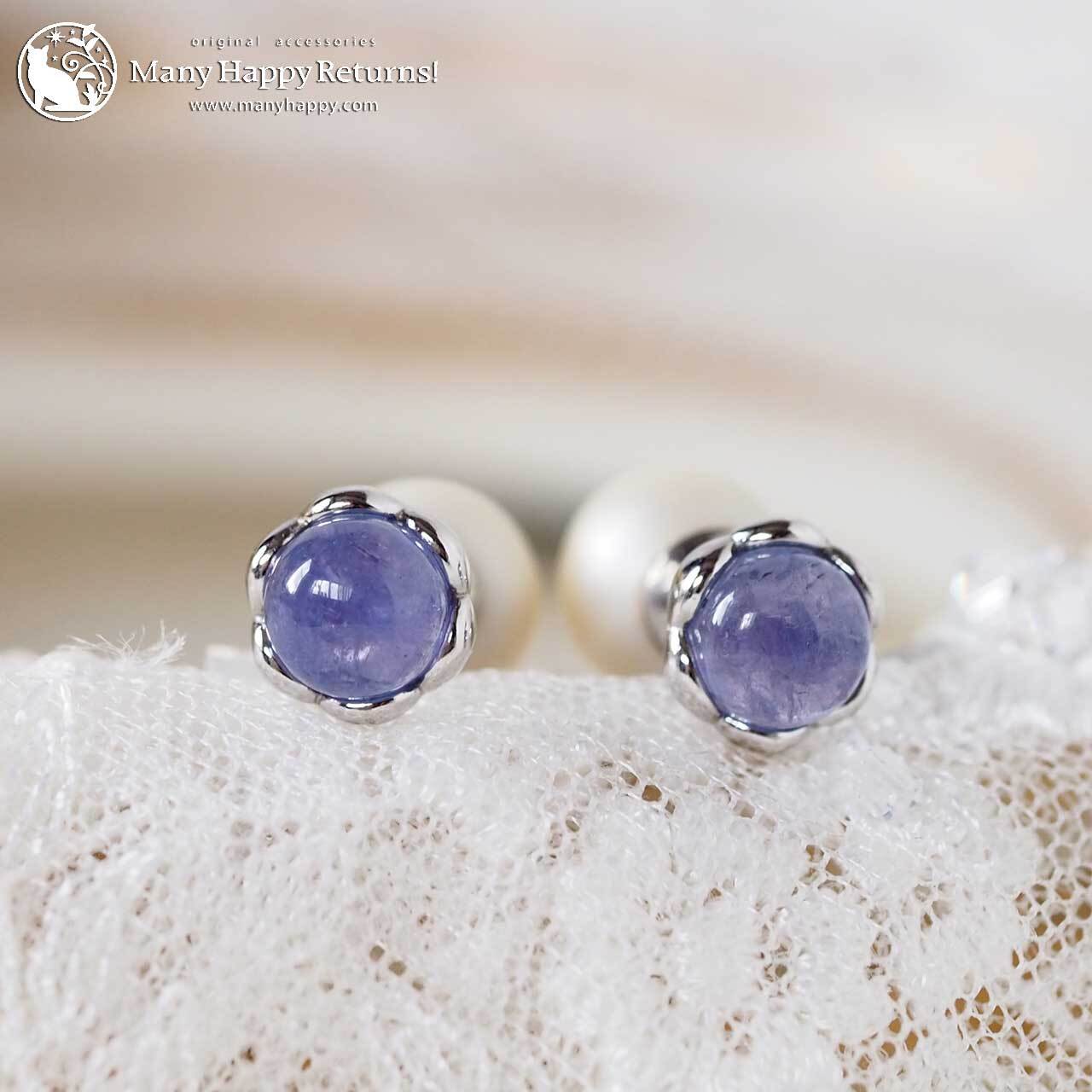 ぷっくりしたタンザナイトカボションを使ったピアス。