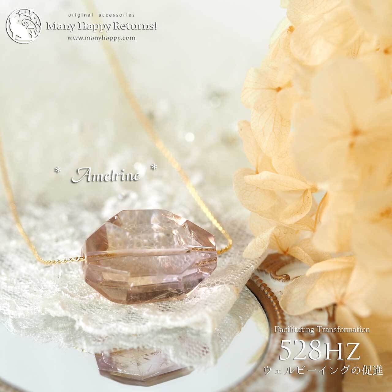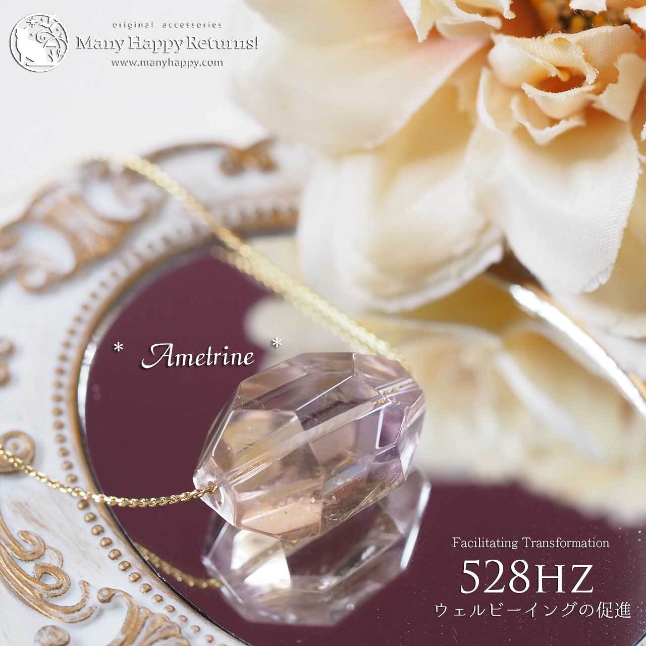 n-3823 幸福感の促進528hz☆高品質アメトリン☆周波数ジュエリー☆ひとつぶチェーンネックレス