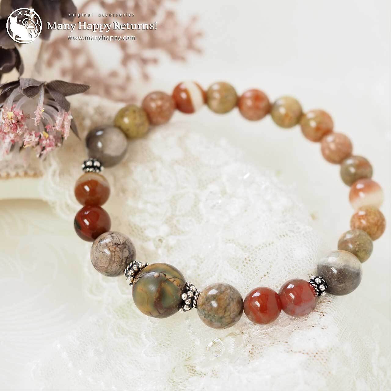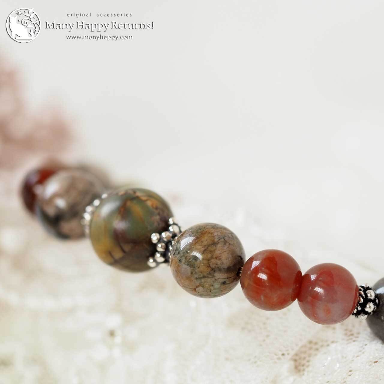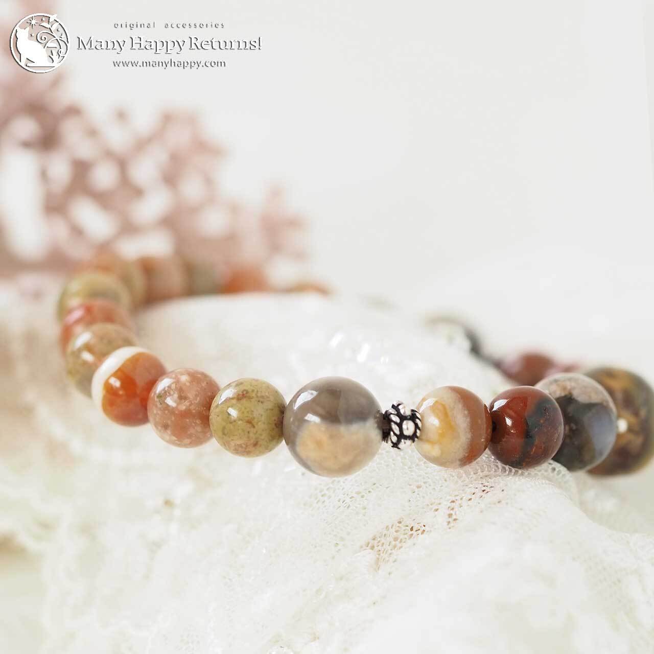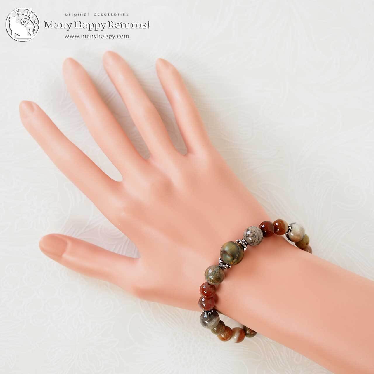 グランドキャニオンワンダーストーンをメインに、ケセラストーン、スレイマンアゲート、サークルストーン連ねたブレスレット。