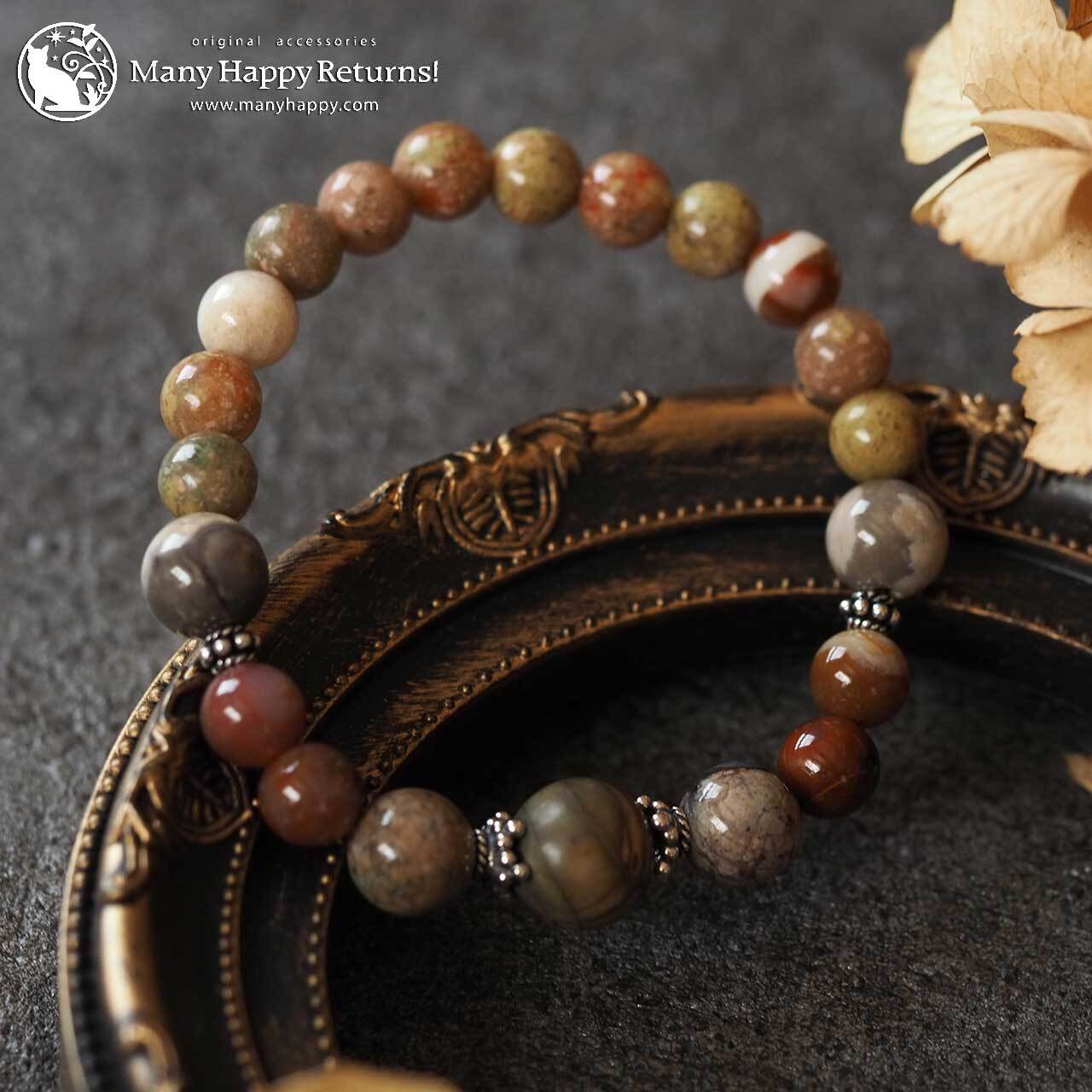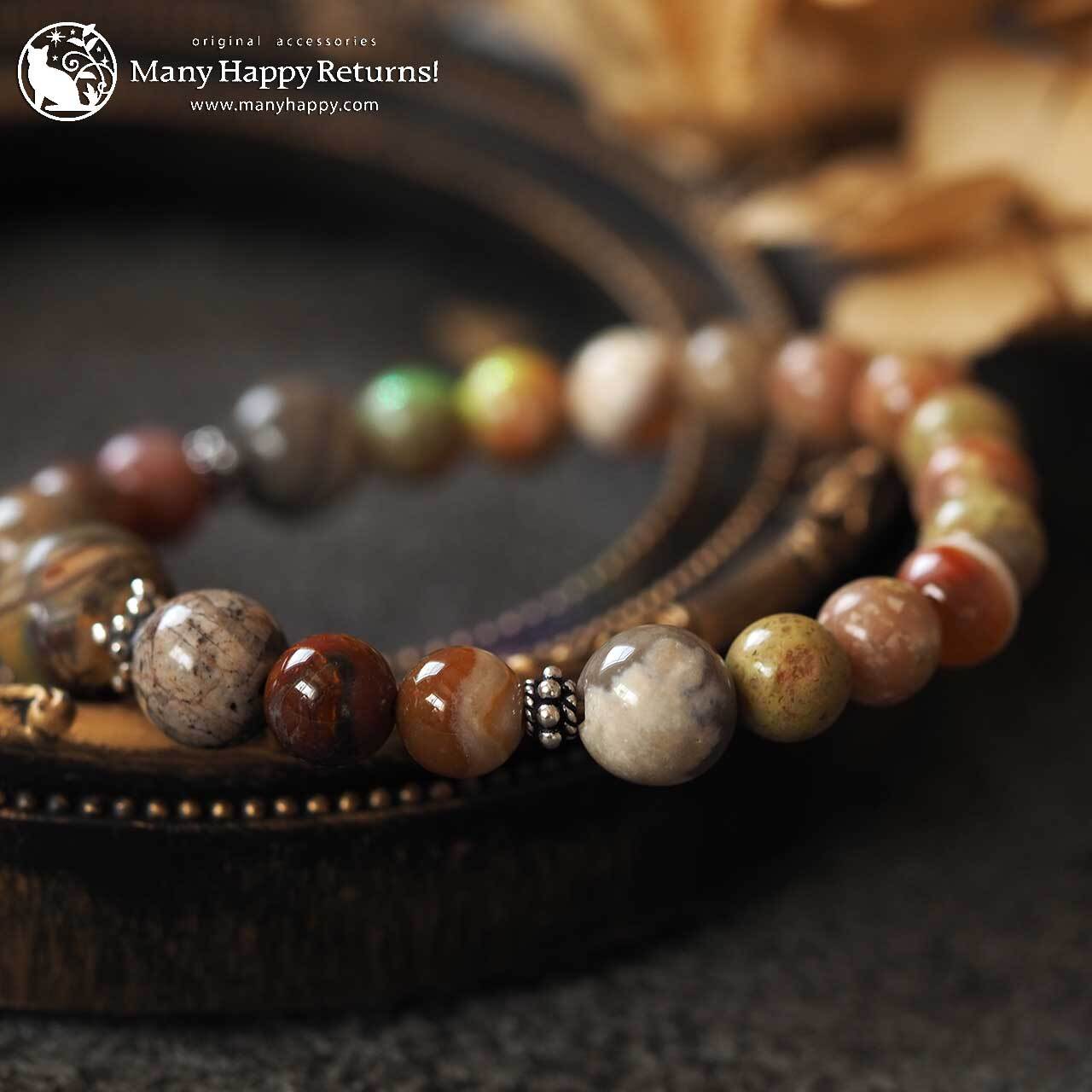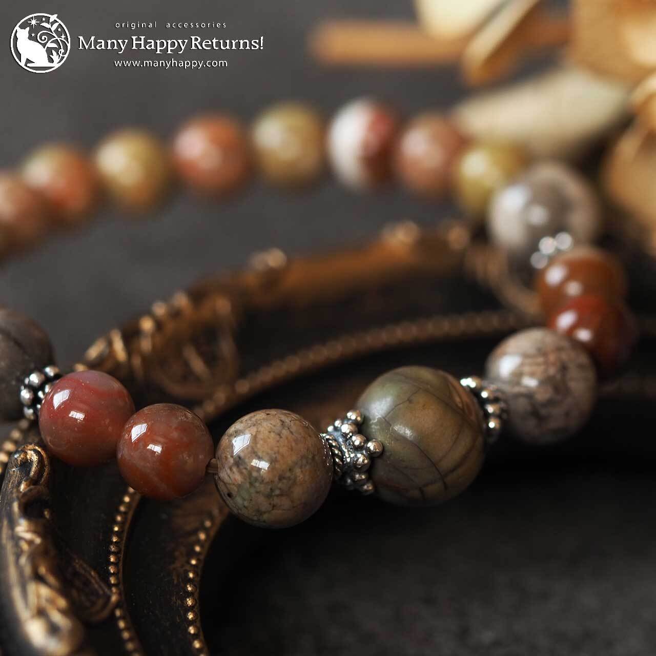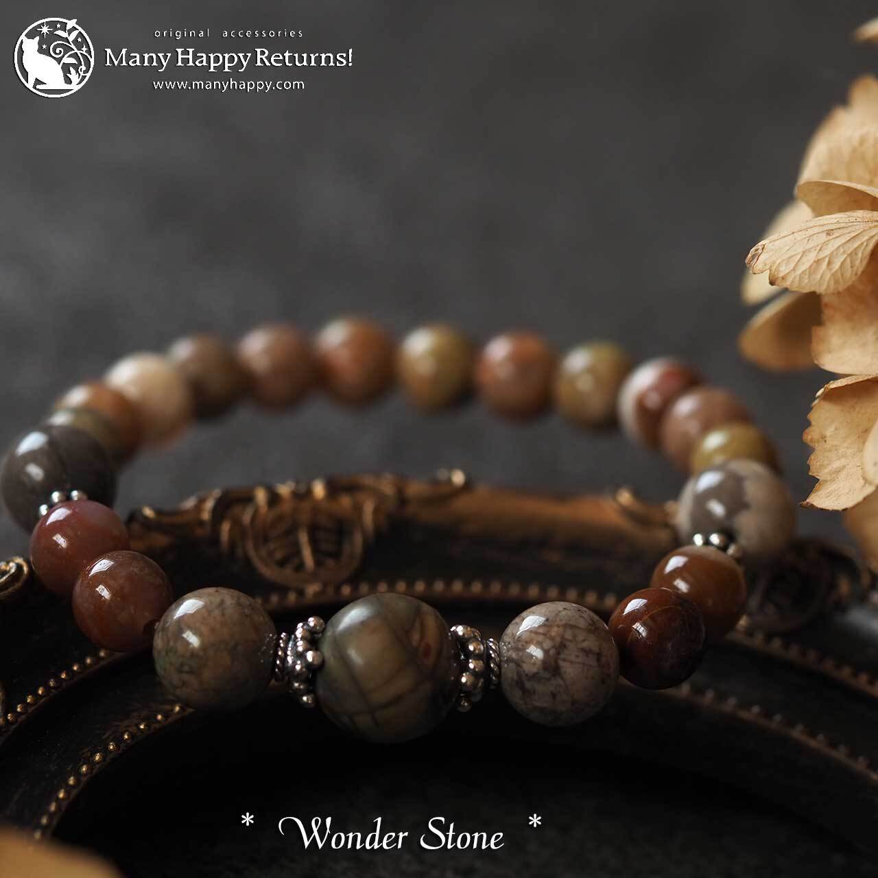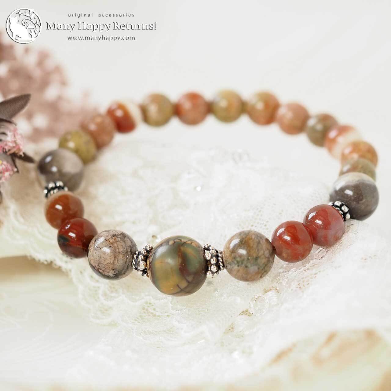 グランドキャニオンワンダーストーンをメインに、ケセラストーン、スレイマンアゲート、サークルストーン連ねたブレスレット。