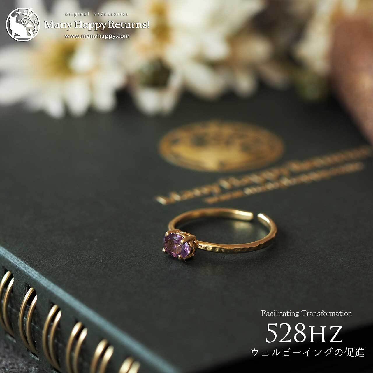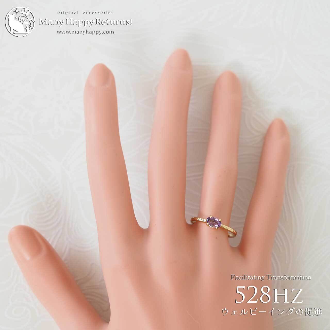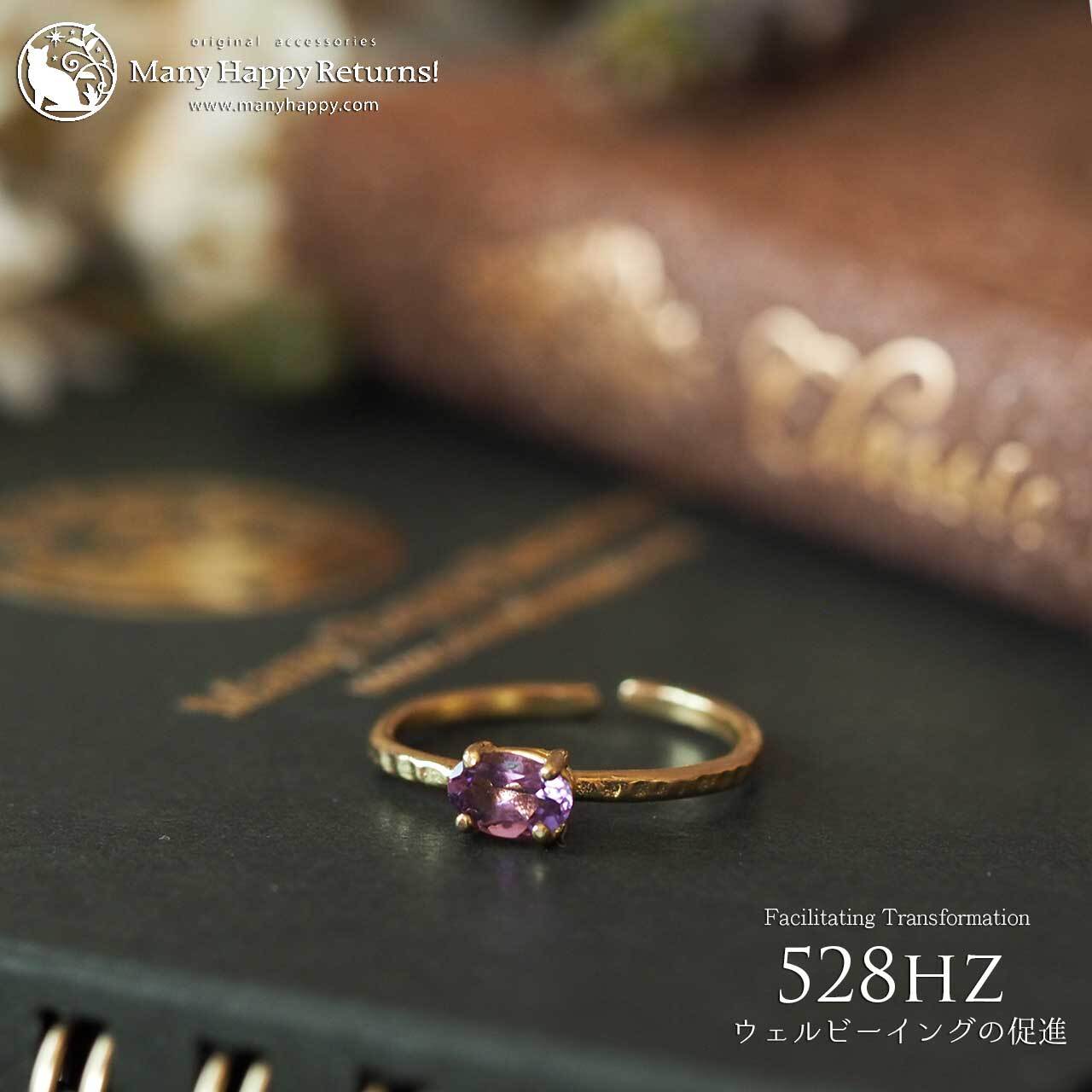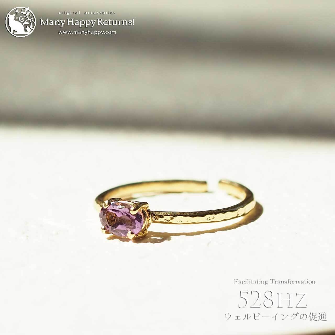 s-268 幸福感の促進528hz☆宝石質ピンクアメジストオーバルブリリアント☆周波数ジュエリー☆K18GPリング