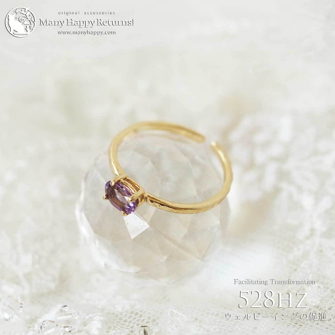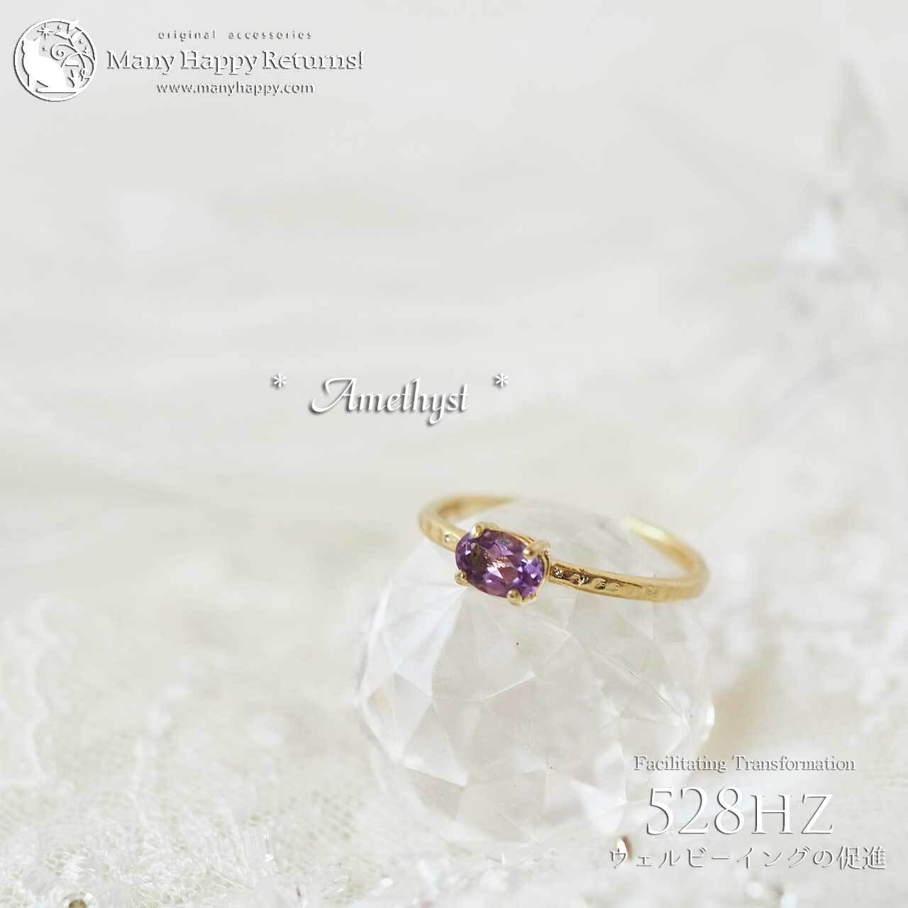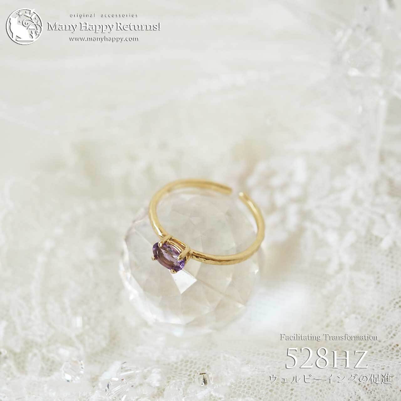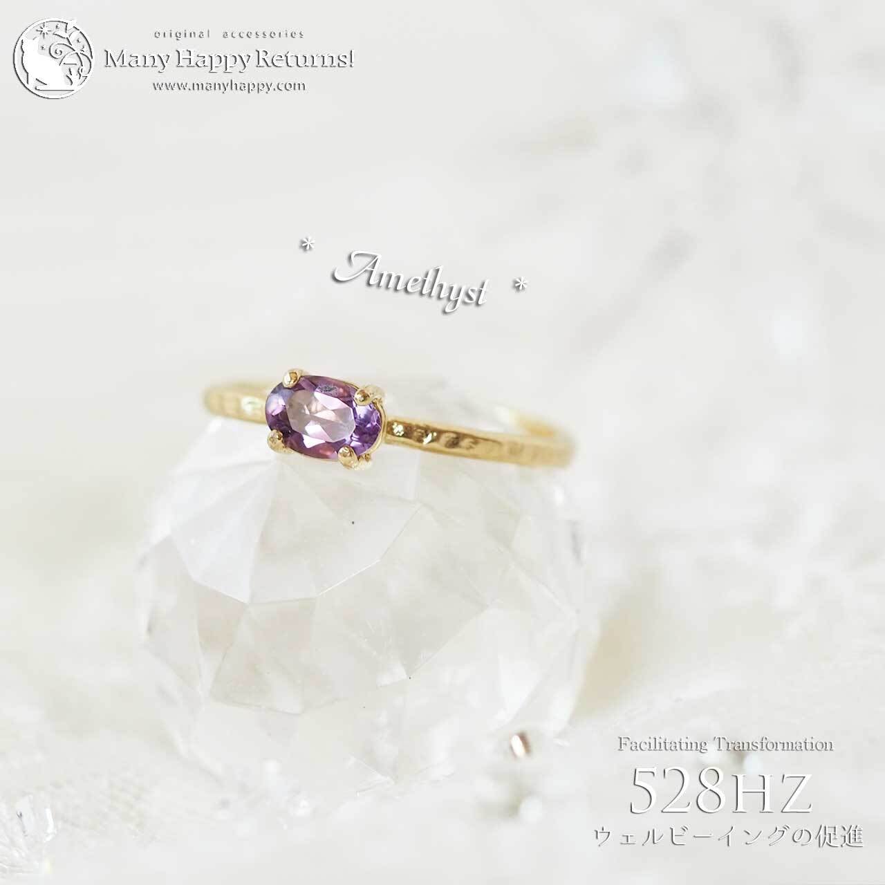 s-268 幸福感の促進528hz☆宝石質ピンクアメジストオーバルブリリアント☆周波数ジュエリー☆K18GPリング