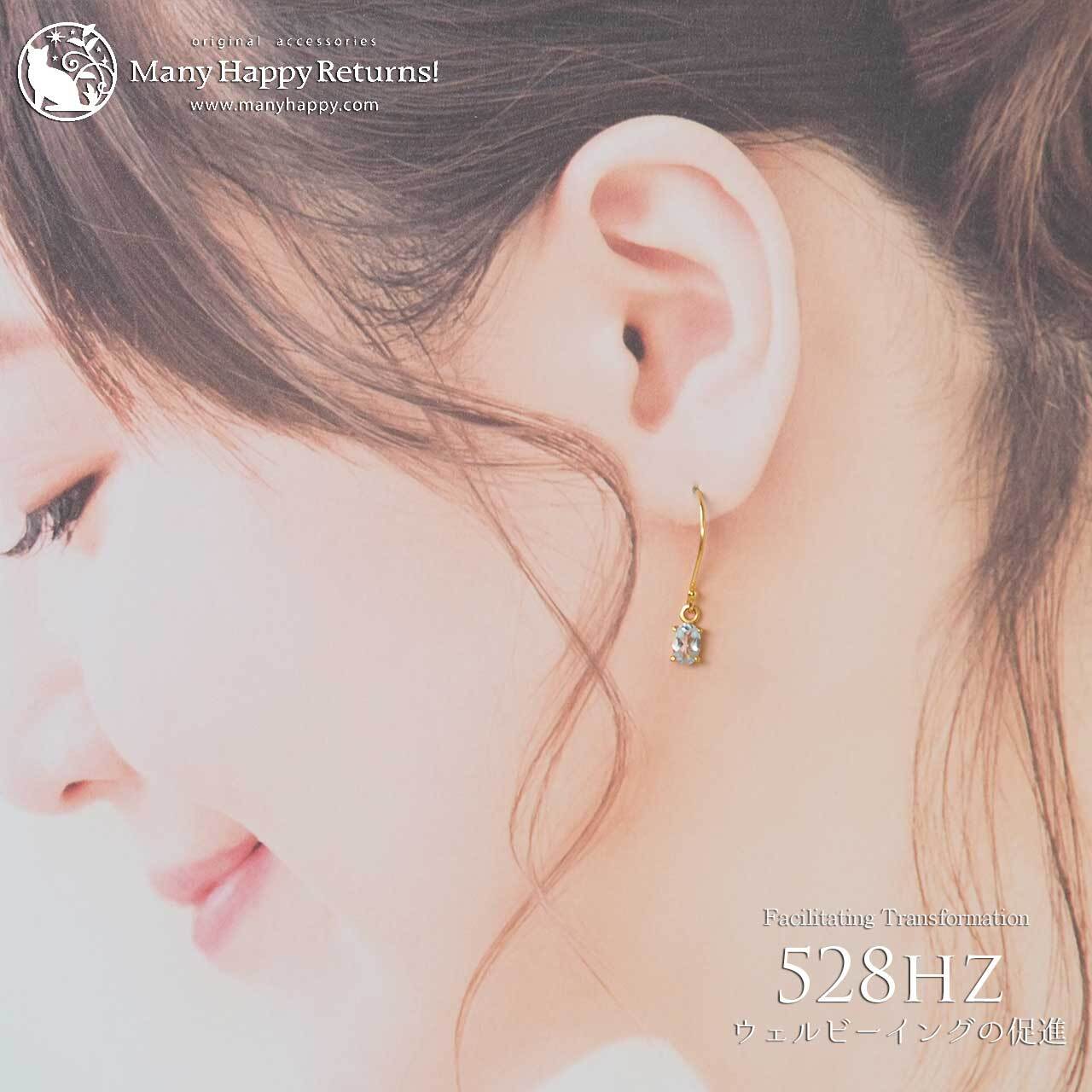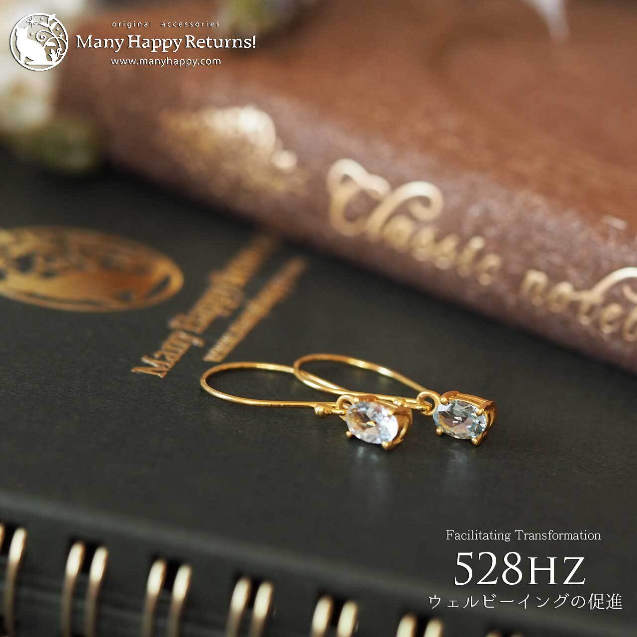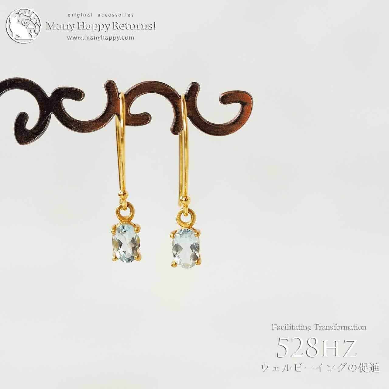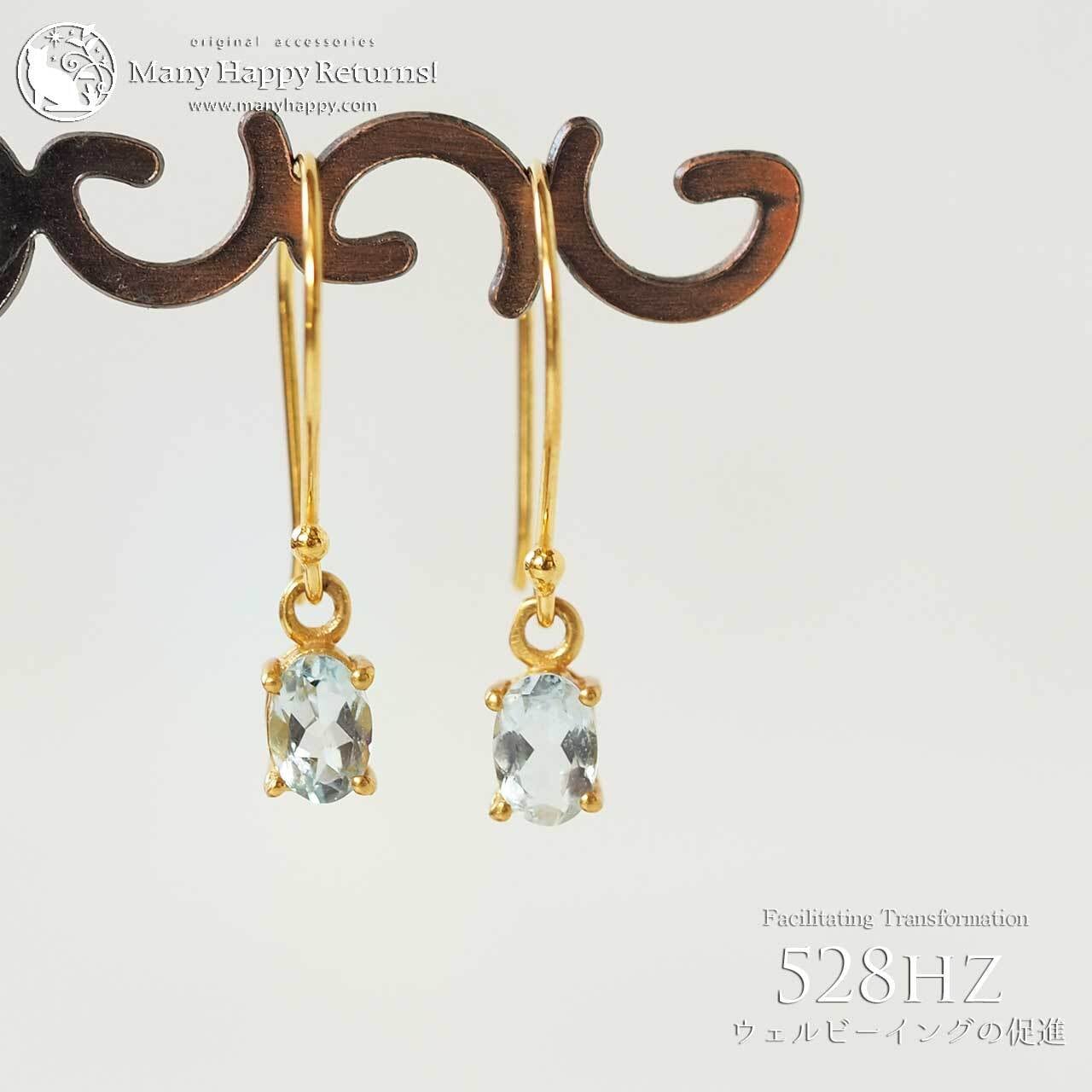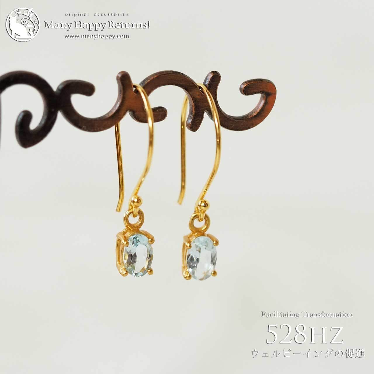 s-271 幸福感の促進528hz☆宝石質アクアマリンオーバルブリリアント☆周波数ジュエリー☆K24Vermeilピアス・イヤリング