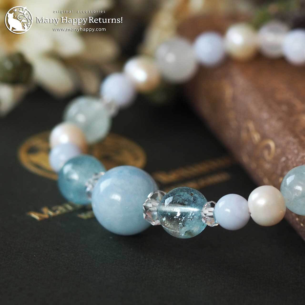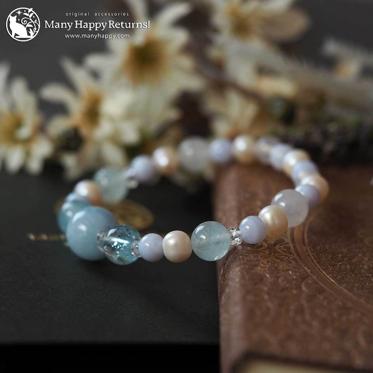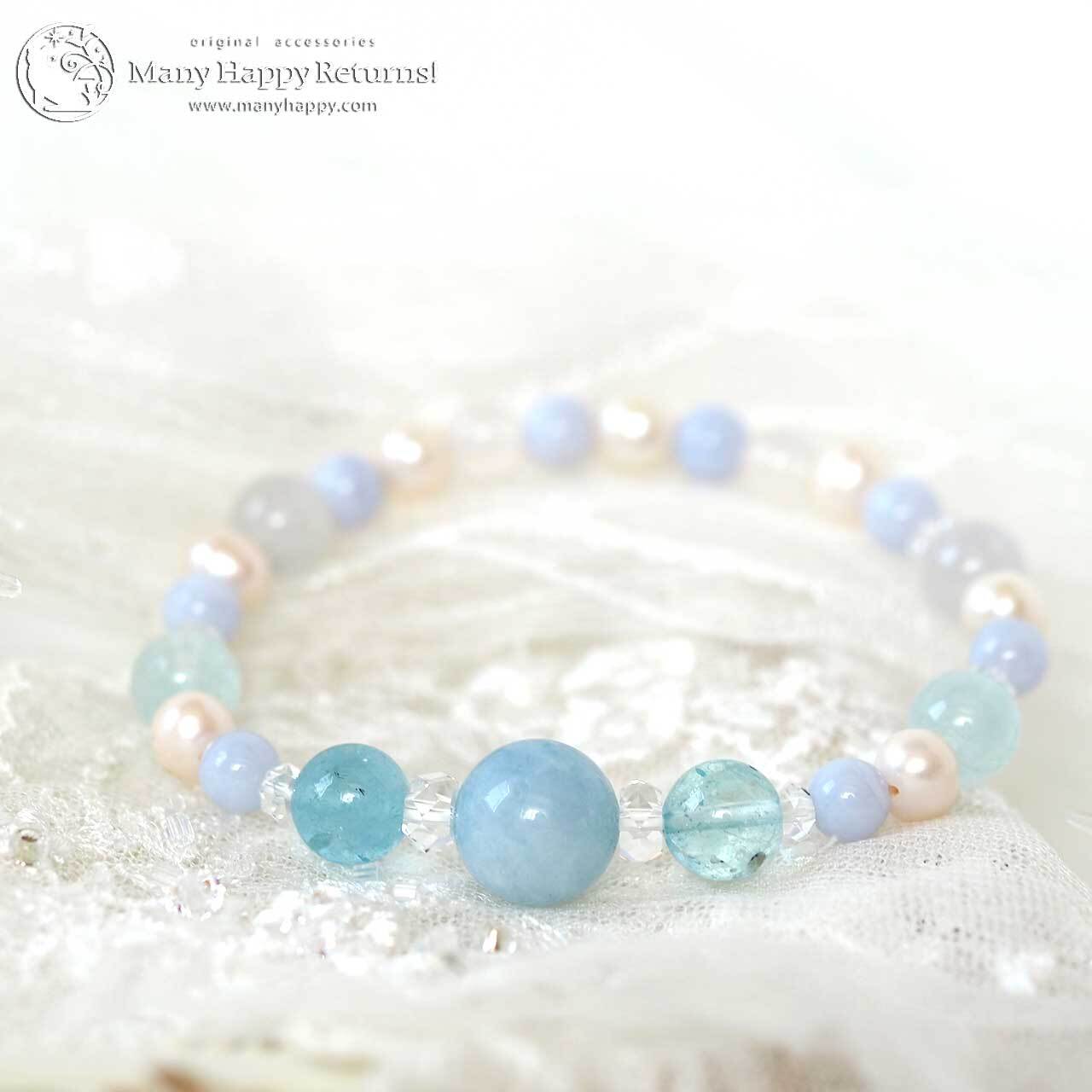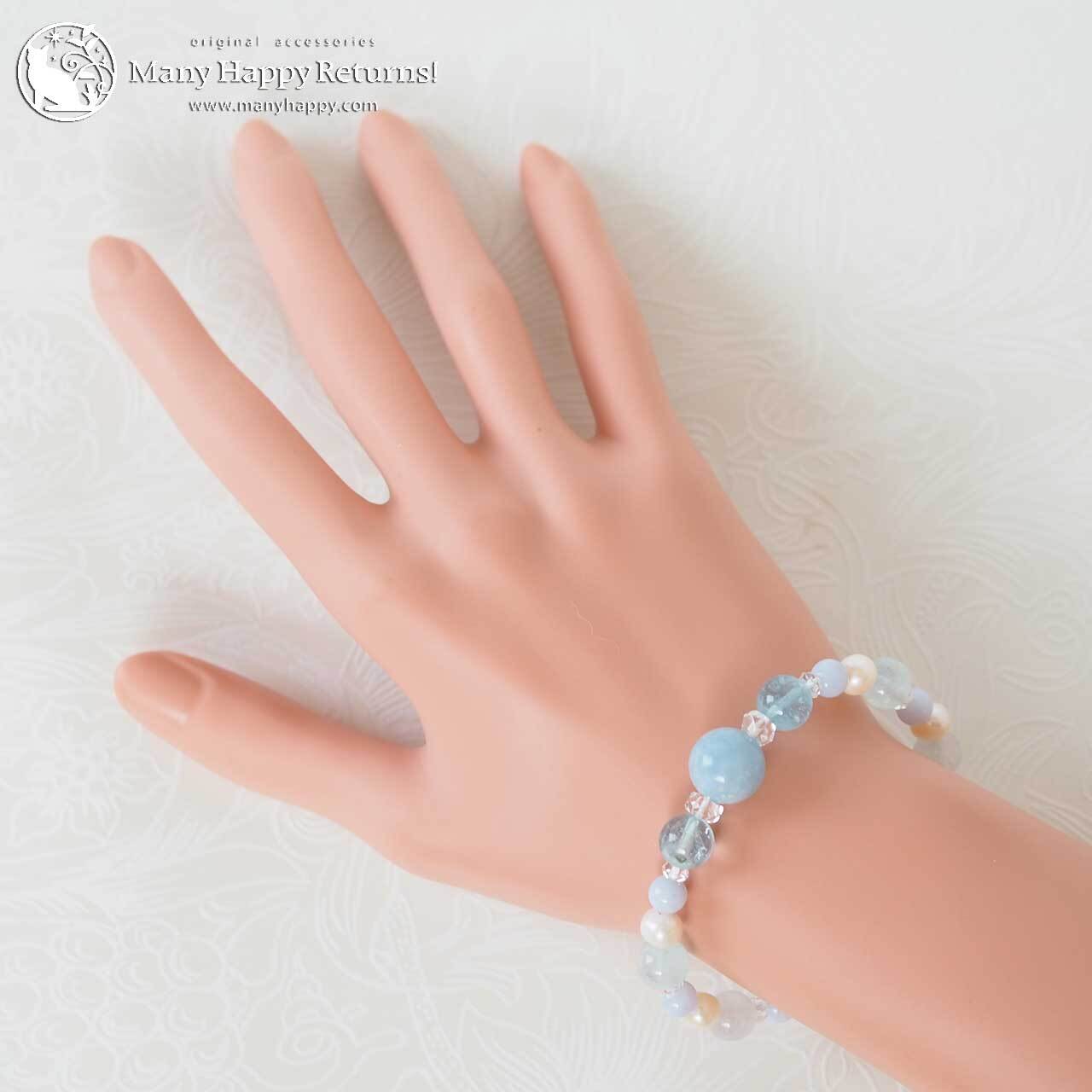アクアマリンと淡水パールの優しいエネルギーで、良いご縁を招き入れるブレスレットに仕上がりました。