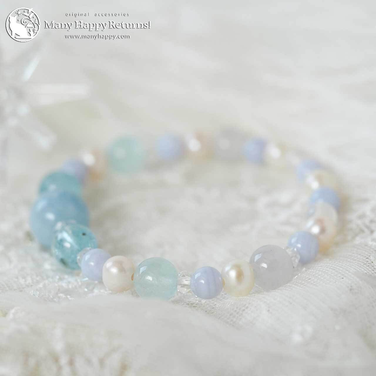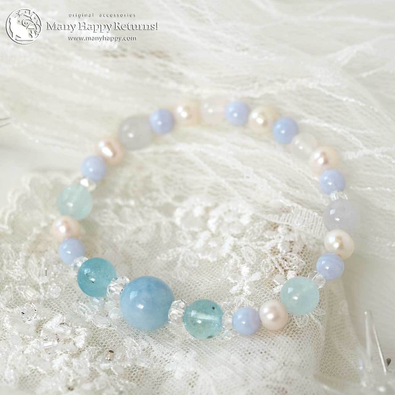 爽やかな水色とパールの輝きのブレスレット。
