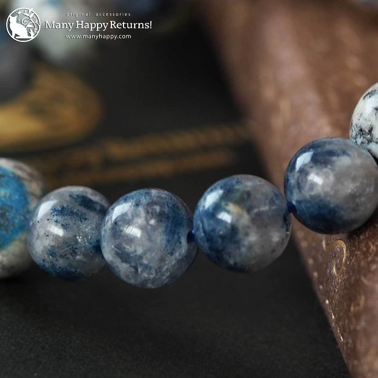 特徴的な青い水玉は「アズライト」です。アズライトは古代エジプトでは神聖な石として扱われており、祈祷の際にも用いられていたといいます。地の部分は花崗岩です。