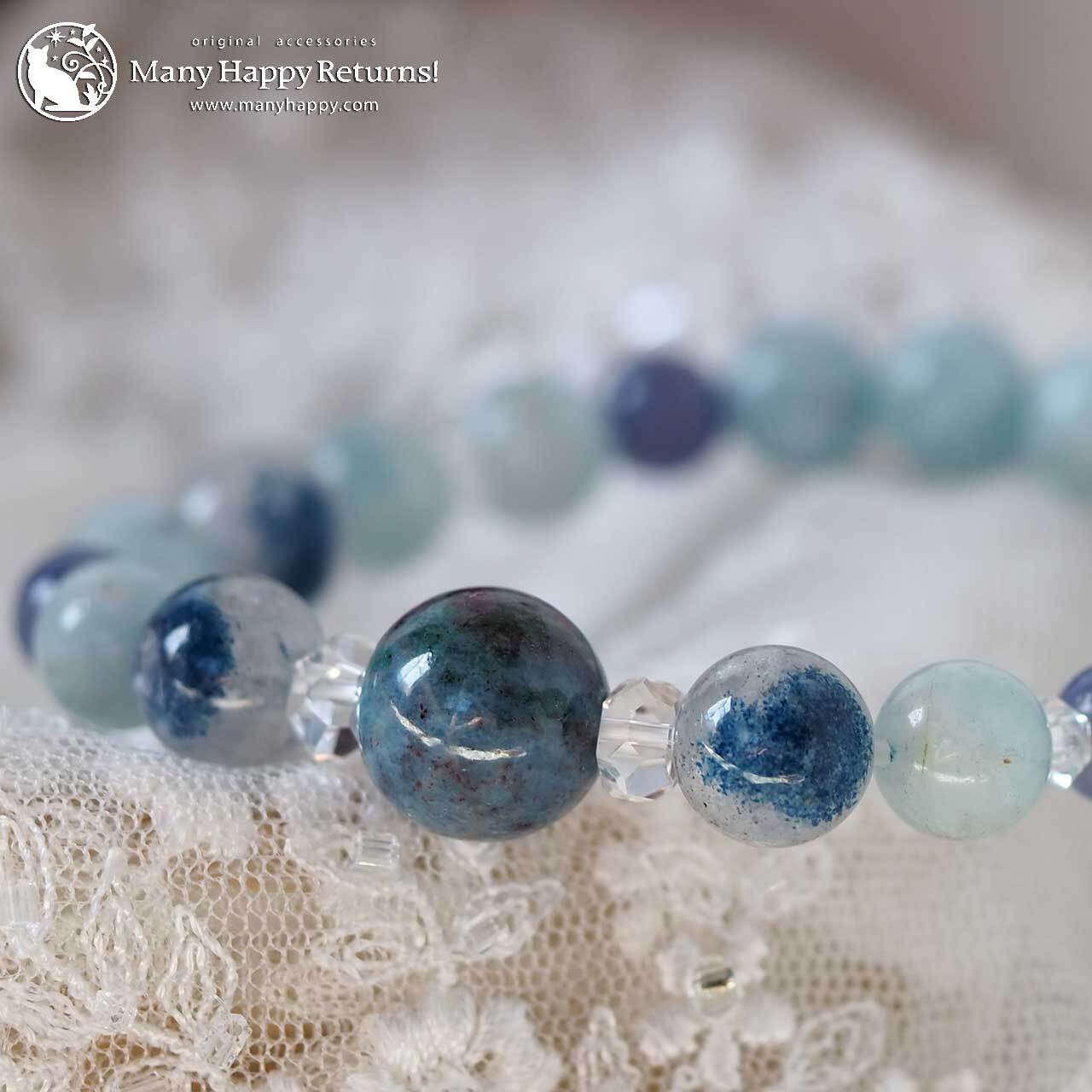 そこに、感情の流れを整えるアクアマリン、意識を高め真実を見抜くタンザナイト、そして鋭い直感と洞察をもたらすラズライトinクォーツを組み合わせました。