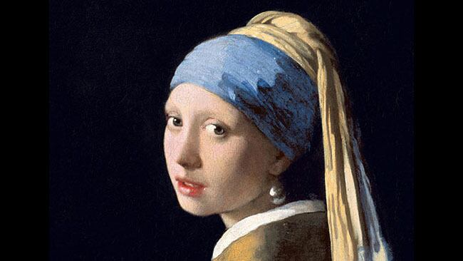 フェルメールの真珠の耳飾りの少女のイメージのパールドロップピアス。