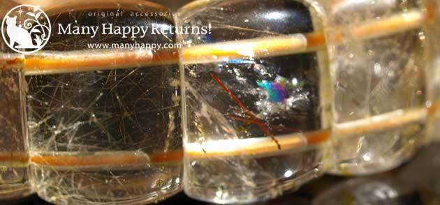 透明感たっぷりのゴールデンルチルのバングルブレス。レインボーも見られます。
