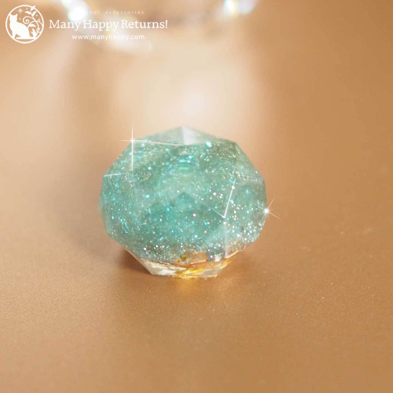 純銀のラメとメモリーオイル、龍体文字を入れた、ジュエル型のオルゴナイト☆