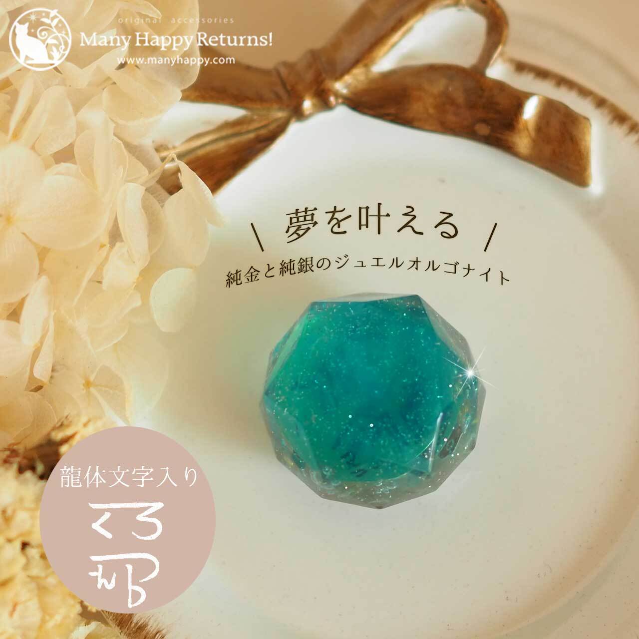 純銀のラメとメモリーオイル、龍体文字を入れた、ジュエル型のオルゴナイト☆