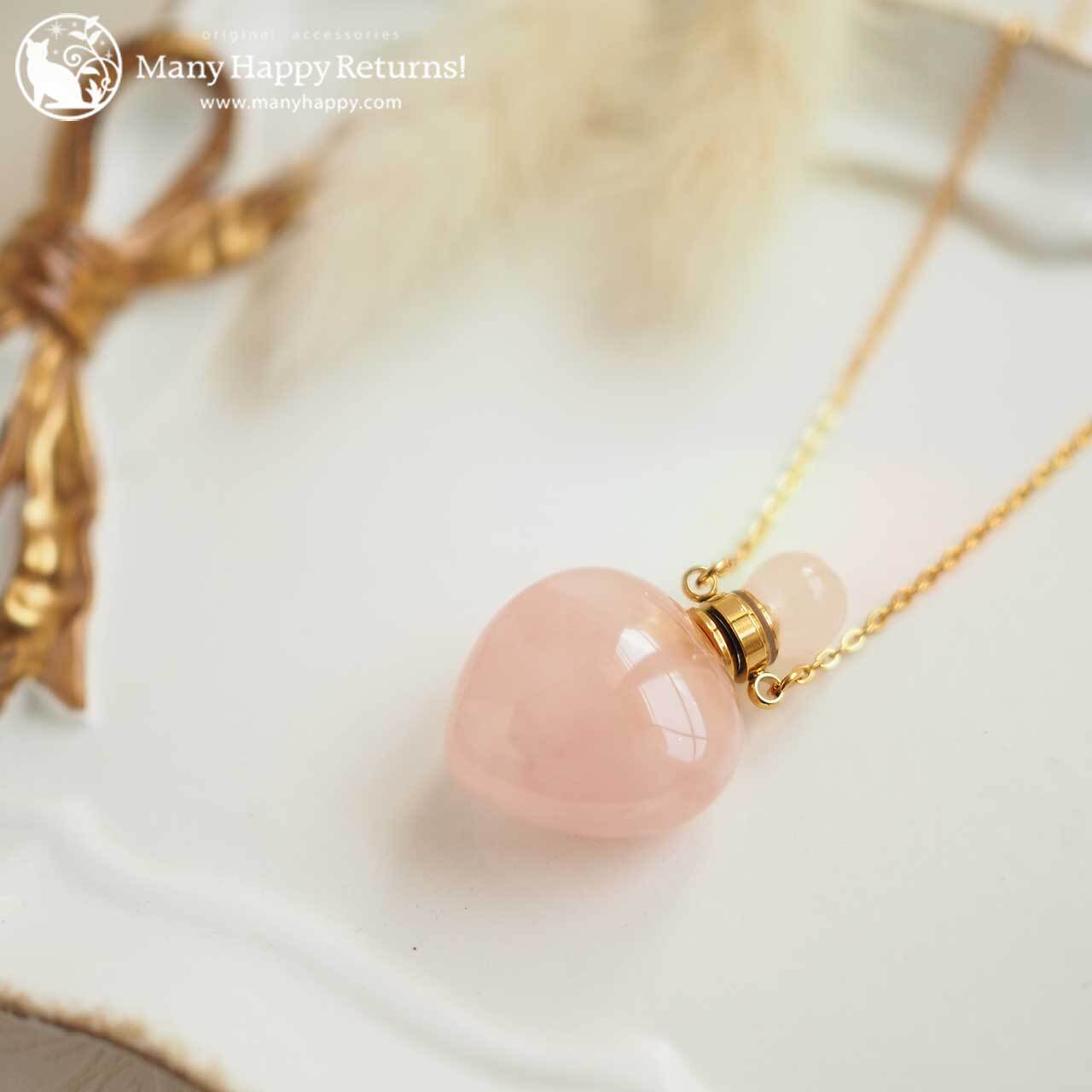n-3432 ローズクォーツハートの香水瓶ネックレス☆選べるメモリーオイル3種類セット ネコポス送料無料