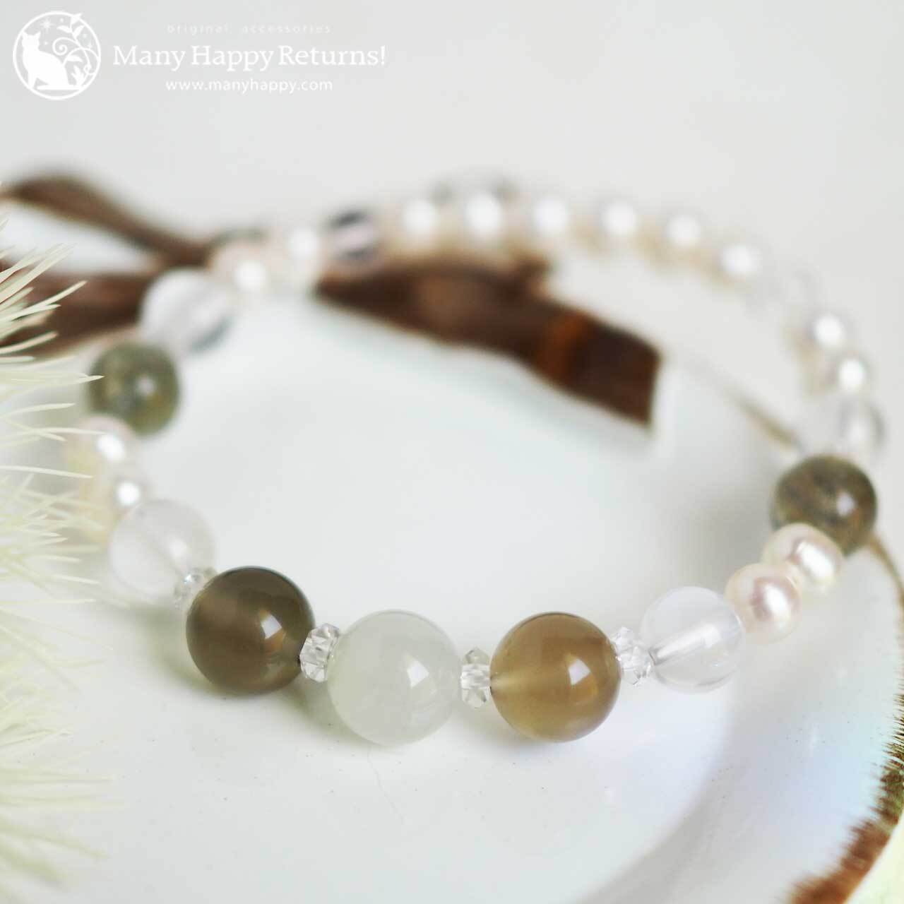 ba-6876 おぼろ月夜☆ホワイトムーンストーン&ブラウンムーンストーン&淡水パール☆ストレッチブレス ネコポス送料無料