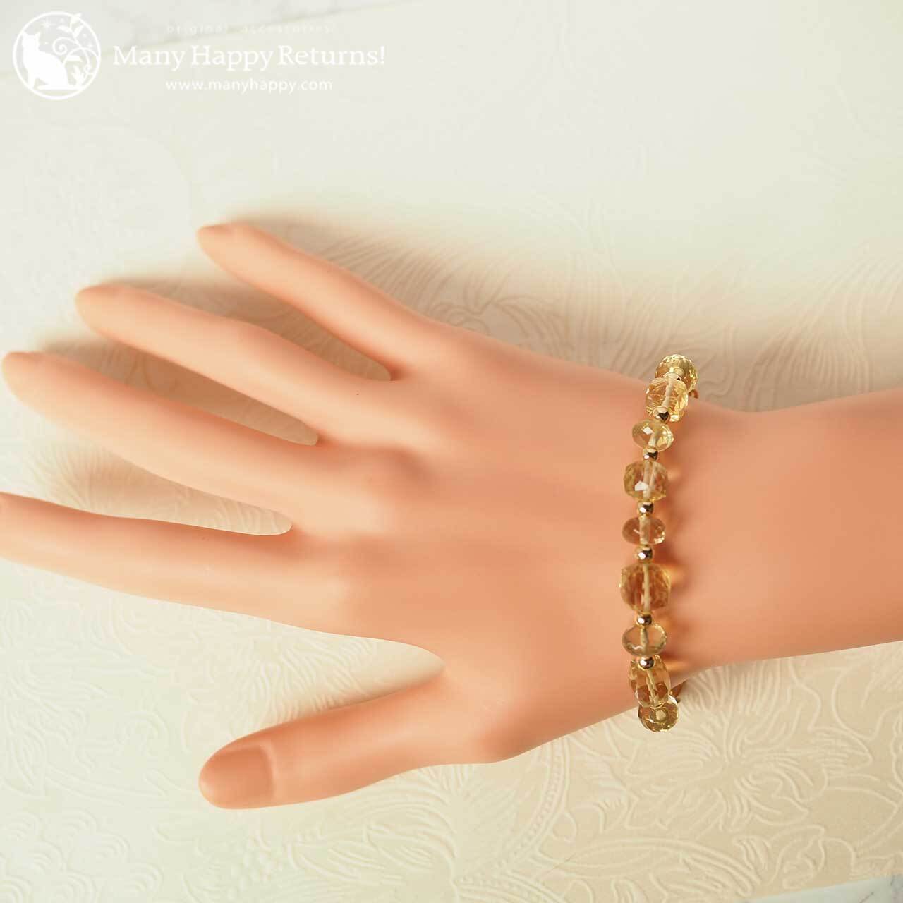 ファセットカットのレモンクォーツとシャンパンクォーツを連ねたチェーンブレスレット。