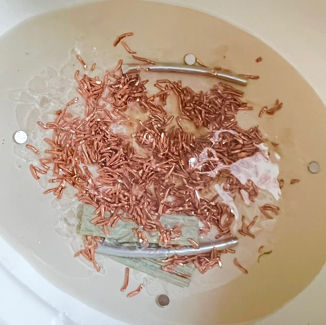 オルゴンエネルギー発生のしくみは、周囲の空間に溜まったネガティブエネルギーがたくさん集まり、オルゴナイトの中に入ります。