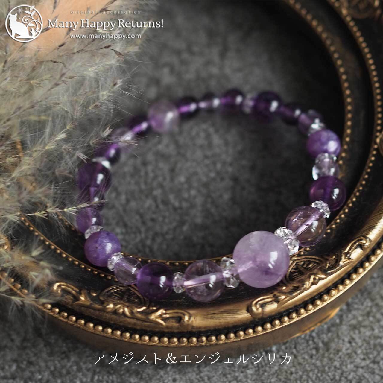 ba-6914 トラウマを癒す☆アメジスト&エンジェルシリカ☆ストレッチブレス ネコポス送料無料