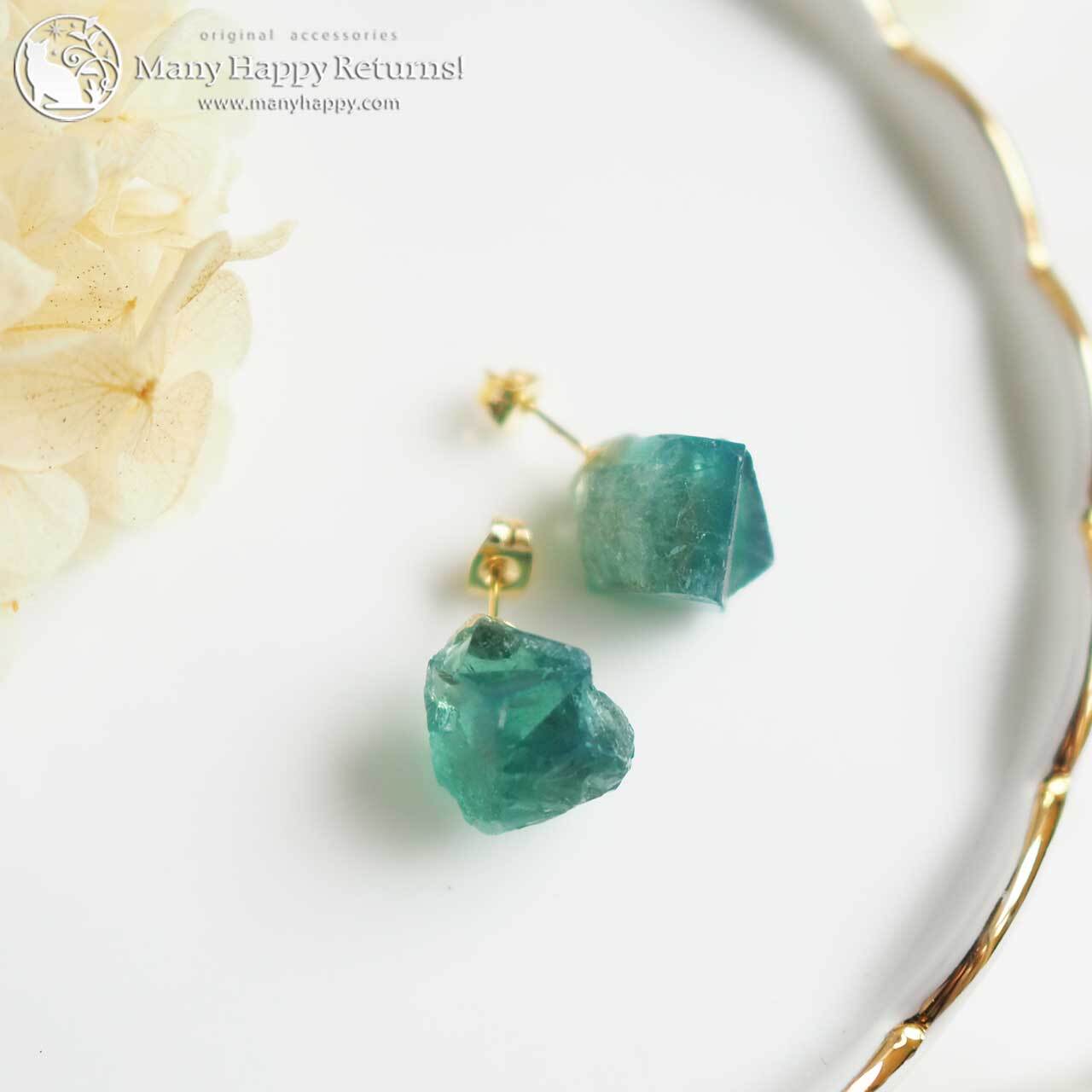 希少なカラーチェンジフローライトのシンプルピアス。