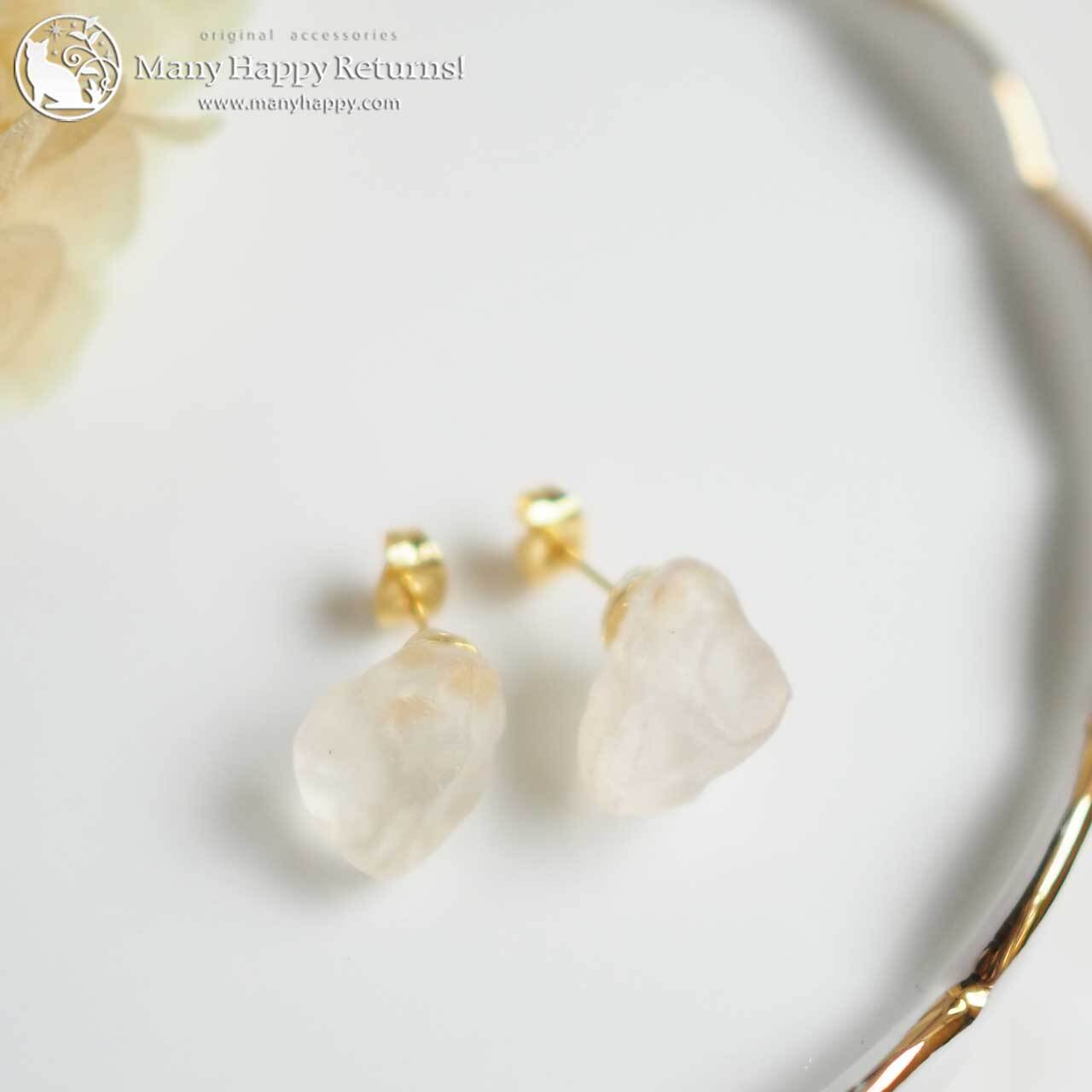 p-2101 浄化と魔除け☆インカクリスタル☆チタンピアス(ゴールド)