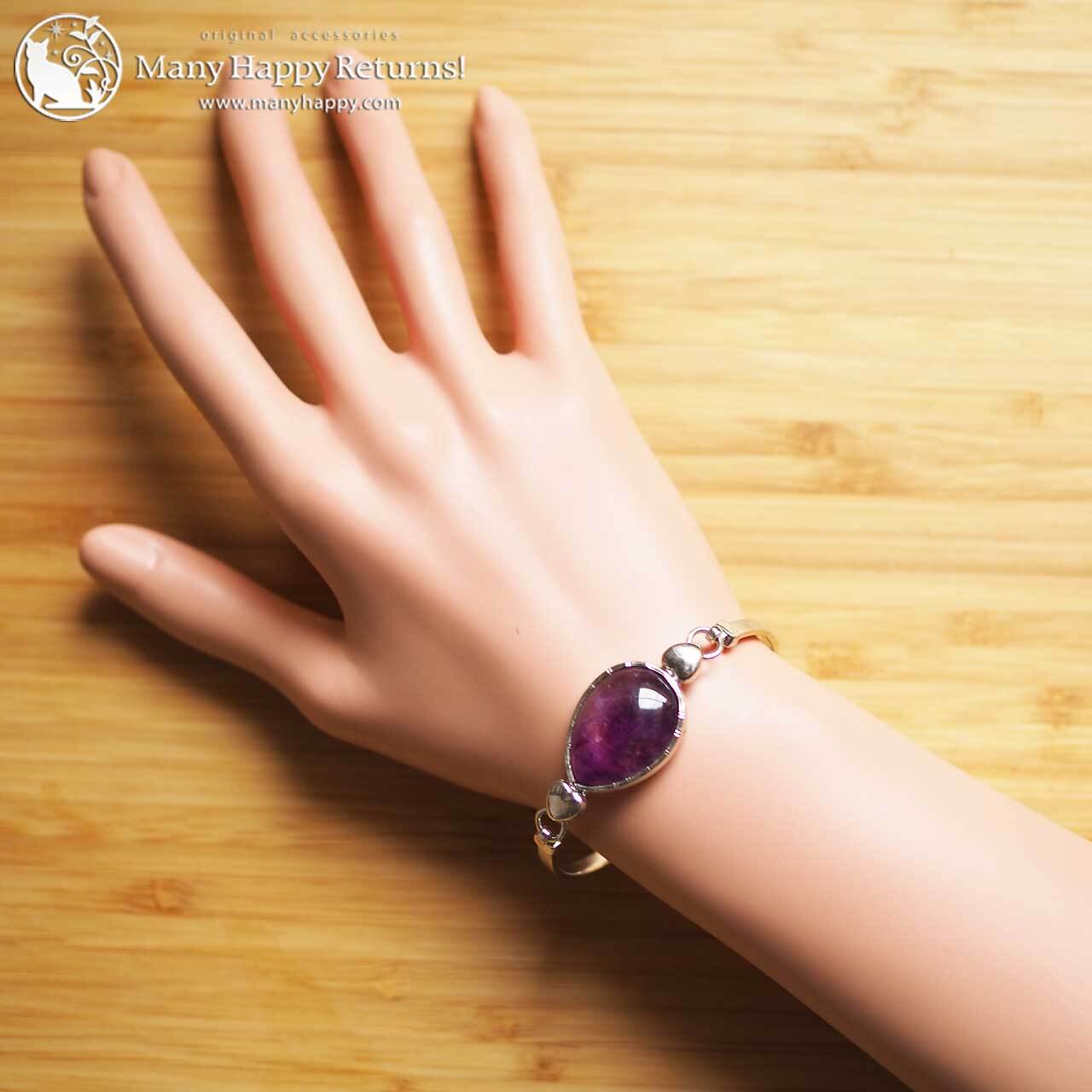 アメジストの横にはハートモチーフがあり、その横にひっかける形で簡単に着脱できるタイプのバングルです。