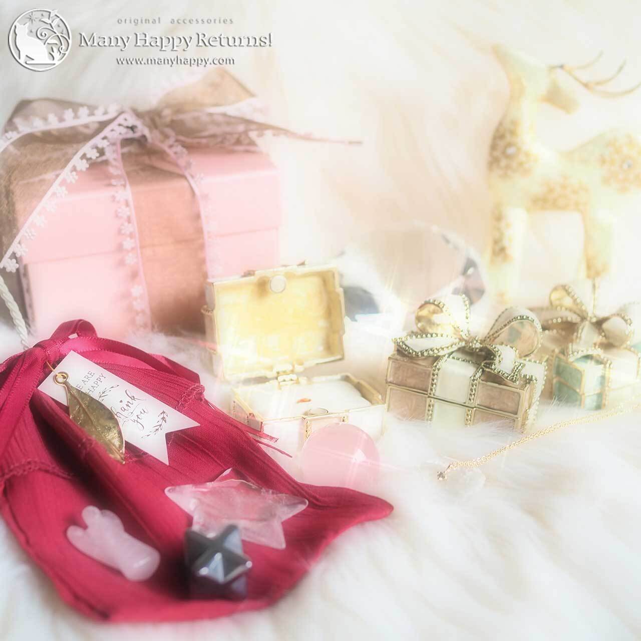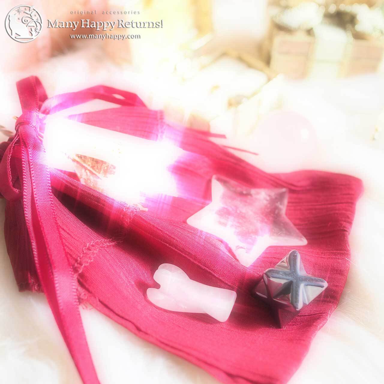 このセットのために仕入れた、日本製のダイヤモンドプチネックレス、高品質のスターシェイプの水晶とローズクォーツ、宝石のルースなど、約3万円分のアイテム計8点がセットになっています。